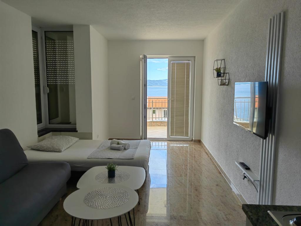 Вилла Марич расположена в тихом районе Башка Вода, в 200 метрах от моря. Вилла предлагает прекрасный вид на море, острова и окружающие горы. Рядом есть рынки, рестораны и кафе. Просторные апартаменты состоят из спальни с двуспальной кроватью, ванной комнаты, кухни, столовой и гостиной. В гостиной есть диван-кровать. Современно оборудованные апартаменты сделают ваш отдых более комфортным: спутниковое телевидение, WiFi, кондиционер и необходимая посуда, а также терраса с прекрасным видом на море. Перед виллой есть просторная парковка. Парковка в гараже предоставляется по запросу и за дополнительную плату. Тихая обстановка вокруг дома обеспечивает тишину от уличного шума и безопасность для детей. Приветливый персонал всегда к вашим услугам. Мы желаем вам теплого приема и желаем, чтобы вы чувствовали себя как дома. Мы надеемся, что вам понравятся наши апартаменты и что вы получите незабываемое удовольствие от отдыха в Башка-Воде! Мы с нетерпением ждем вашего приезда!