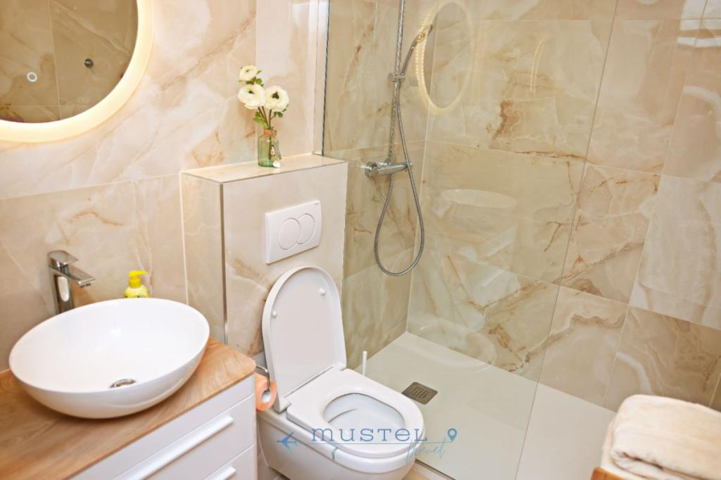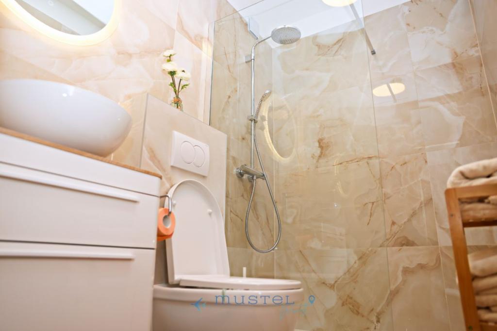 Апартаменты, расположенные на втором этаже здания, обеспечивают комфортное размещение до 4 человек и идеально подходят для семей, пар или компаний друзей. В апартаментах: 2 спальни: одна с двуспальной кроватью 160x200 см, другая с двуспальной кроватью 180x200 см; ванная комната с душем и стиральной машиной; полностью оборудованная кухня; балкон с видом на море – идеальное место для утреннего кофе или вечернего отдыха; гостиная с выходом на балкон; бесплатная парковка в 150 метрах от апартаментов.