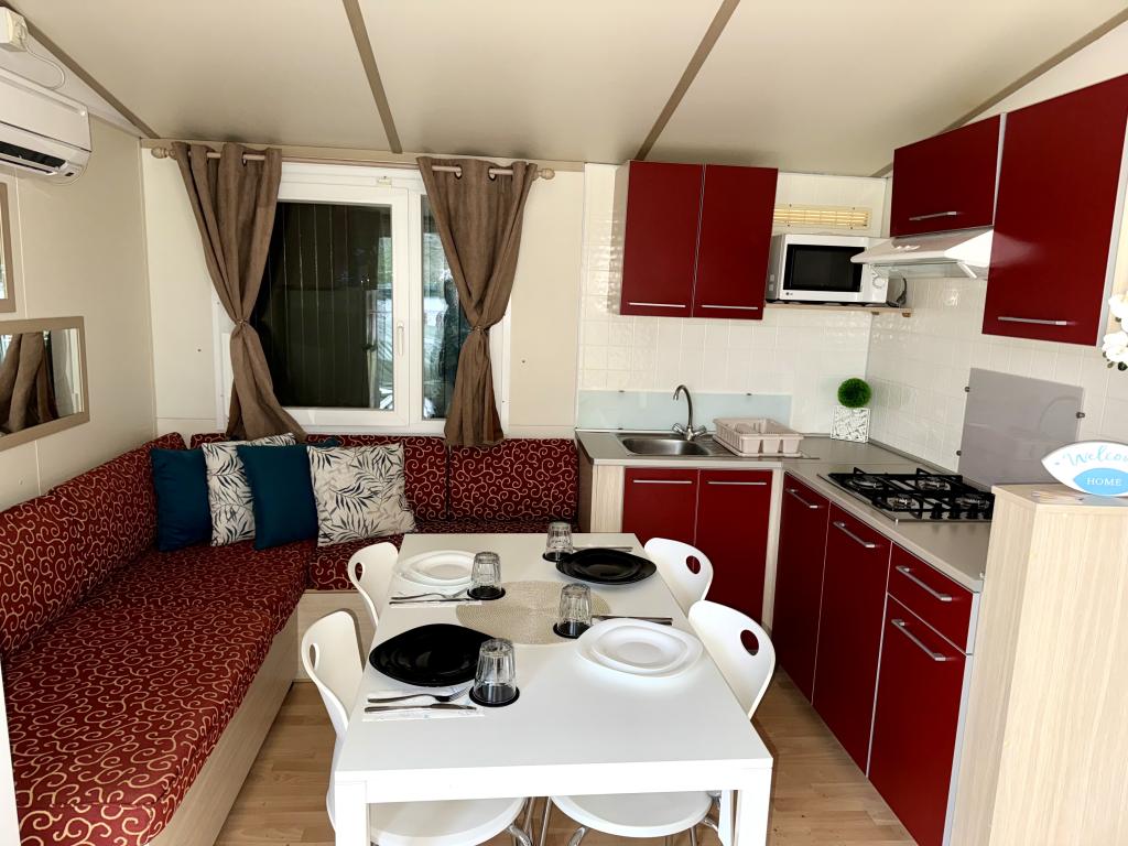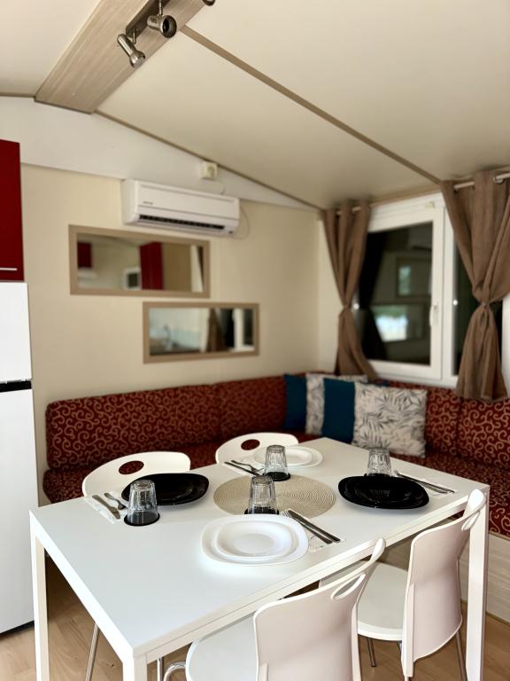 Мобильный дом Bonaca расположен на территории кемпинга Bakija, в 40 метрах от моря, с удобным доступом к пляжу. Недалеко от пляжа Солине (2-3 минуты пешком), в 1 минуте ходьбы от рынка Studenac и в 7-8 минутах ходьбы от центра города. Полностью оборудован садом, кухней, уютной гостиной. Парковка! Собственный мангал на открытом воздухе и собственный душ на открытом воздухе. Дом рассчитан на 4 человек, имеет 2 спальни и 2 ванные комнаты. Просторная терраса идеально подходит для приятного отдыха с видом на море и прекрасные закаты.