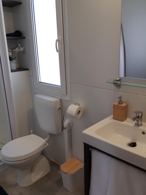 Современный мобильный дом InnMare 781, расположенный в тихой части кемпинга Солине, в сосновом лесу, идеально подходит для семейного отдыха. Площадью 32 м2, он состоит из спальни с двуспальной кроватью, спальни с двумя односпальными кроватями, гостиной с раскладной кроватью (на 1-2 человека), ванной комнаты с туалетом, террасы площадью 32 м2, небольшого дворика и парковочного места. Дом полностью меблирован, кухня, помимо стандартного оборудования, также включает микроволновую печь, электрический чайник и кофемашину. На террасе есть дополнительный обеденный стол, шезлонги для прекрасного отдыха в аромате сосен, а рядом с домом находится электрический гриль, который также является неотъемлемой частью оборудования, которым могут пользоваться гости. Рядом с домом также есть парковочное место для одного автомобиля. Добро пожаловать в InnMare 781, современный отель, созданный для спокойного и идиллического семейного отдыха в тихом сосновом лесу, в непосредственной близости от моря, пляжей и Биограда-на-Мору!