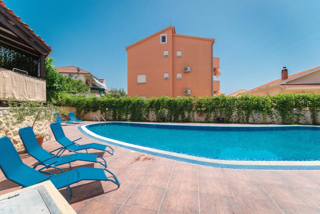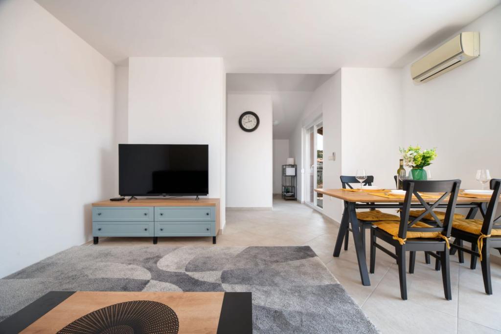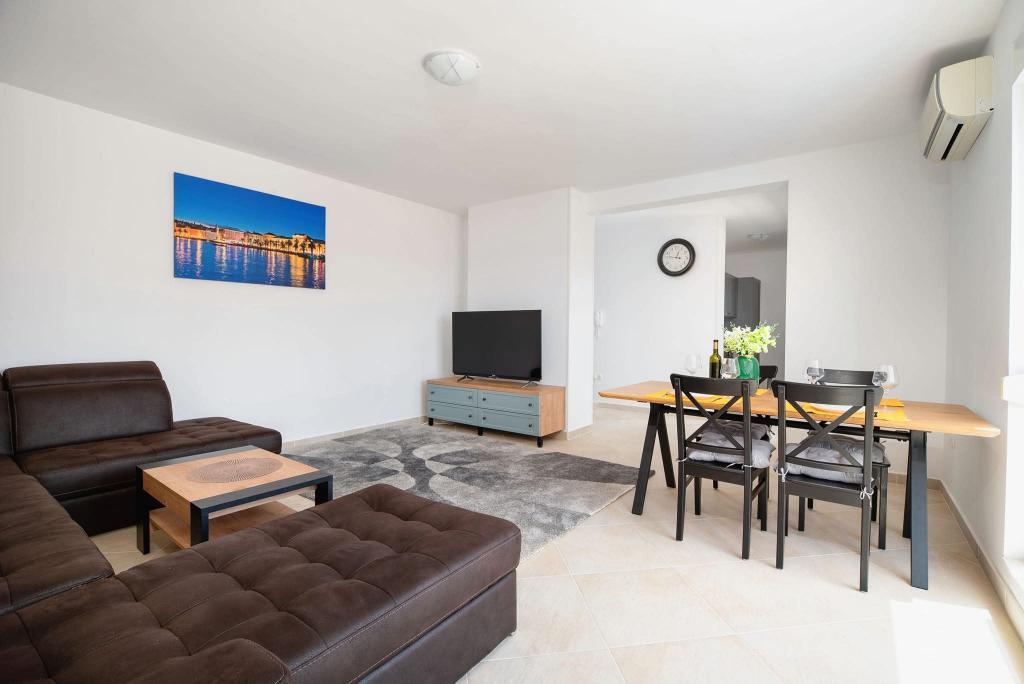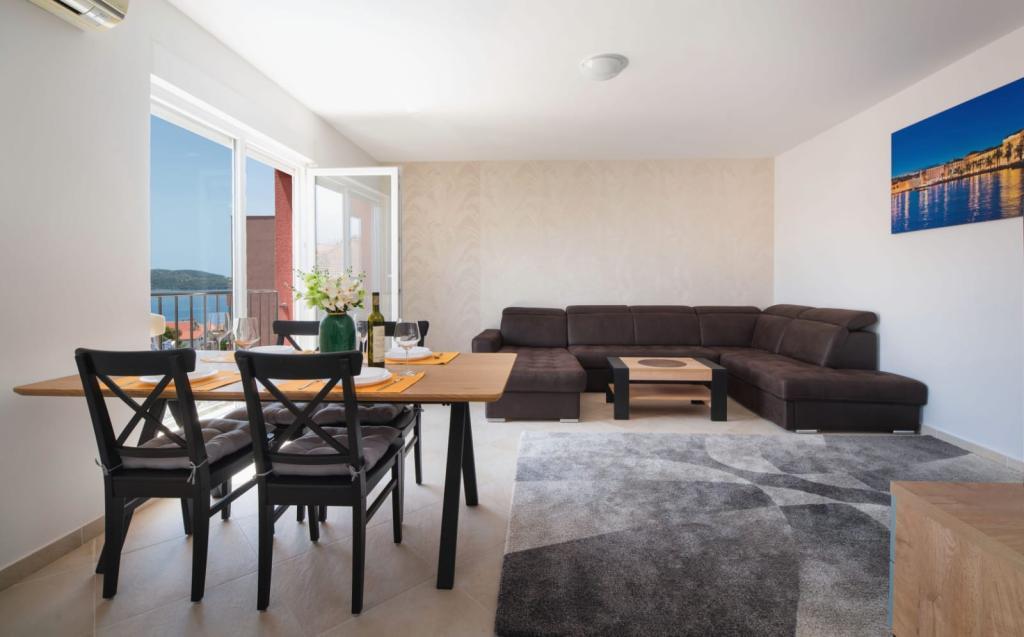 Апартаменты состоят из 2 спален, ванной комнаты, кухни, гостиной и террасы общей площадью 68 м2. В каждой комнате есть большая двуспальная кровать и кондиционер. Кухня оборудована всем необходимым для приготовления вкусной еды. Апартаменты расположены в тихом районе острова. Кемпинг Рожац находится в 100 м. Рядом расположены супермаркеты, рестораны и пекарни. К услугам гостей собственное парковочное место. Бассейн открыт с 15.06 по 15.09 с 8:00 до 20:00.
