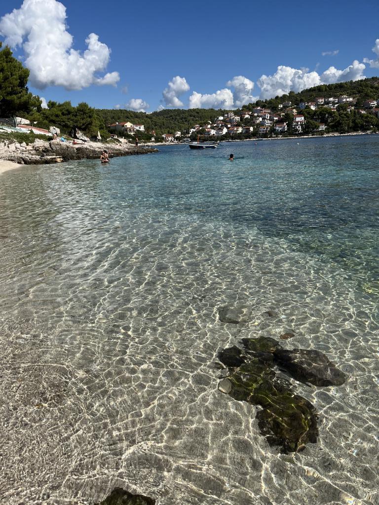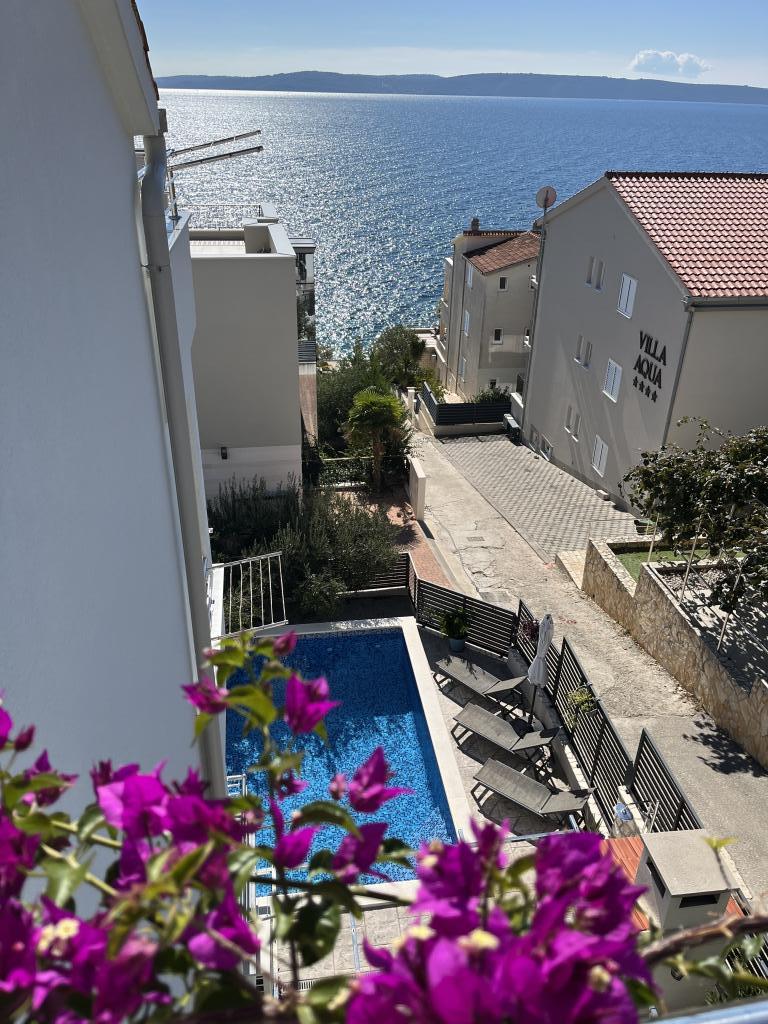 Утренние прогулки по морю, такому синему, что до боли, завтрак на балконе с волшебным видом, современный свежий свет и красивый внутренний дворик у бассейна, где мы несколько раз ужинали. Соляные ванны прямо под домом из небольших саун/камней. Хороший галечный пляж ок. В 250 м от дома, идеально подходит для маленьких детей, за углом небольшой симпатичный продуктовый магазин. Никаких шезлонгов-пакса или евродиско у бассейна, просто для удовольствия. Фантастический хозяин, который с большим терпением помогает во всем, у соседа есть компания такси, и он отвозил нас, куда мы хотели, на самолеты и обратно, на экскурсии в Трогир и т. д. Настоятельно рекомендую.