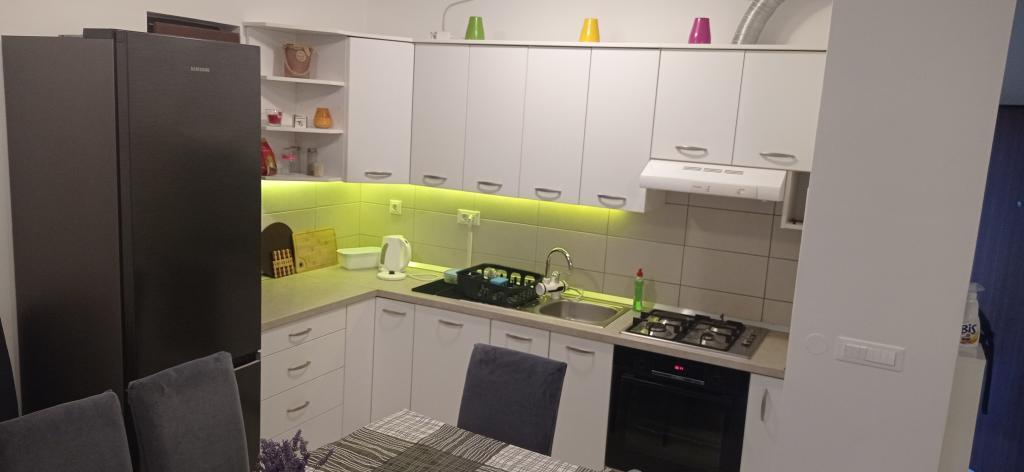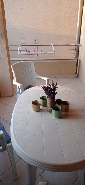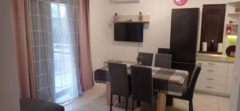 Квартира расположена в тихом жилом комплексе на первом этаже здания. Квартира полностью меблирована и оснащена бытовой техникой. Объект расположен в 250 м от первого каменистого пляжа и в 2 минутах езды на машине от песчаного пляжа в центре города. В центре есть магазин, ресторан, 2 кофейни на пляже и церковь. Также от апартаментов до центра проложена недавно отремонтированная набережная вдоль моря. Остров идеально подходит для летнего отдыха, поскольку он идеально подходит для велосипедистов, любителей пеших прогулок и пробежек на вершине острова. Множество достопримечательностей.