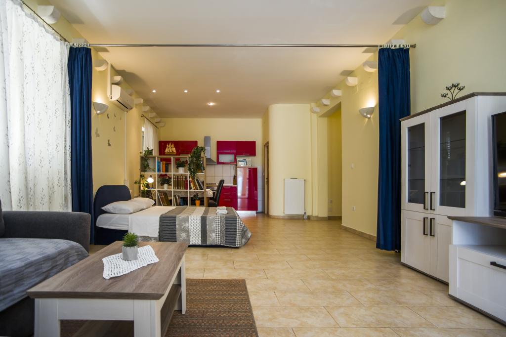 Мы остановились в квартире-студии + 2 на первом этаже. Квартира очень большая, аккуратная, терраса отличная. Близость к пляжу 10 шагов, красивый сад. Мы были в восторге. Владельцы очень добрые люди. Пребывание всей недели было идеальным.