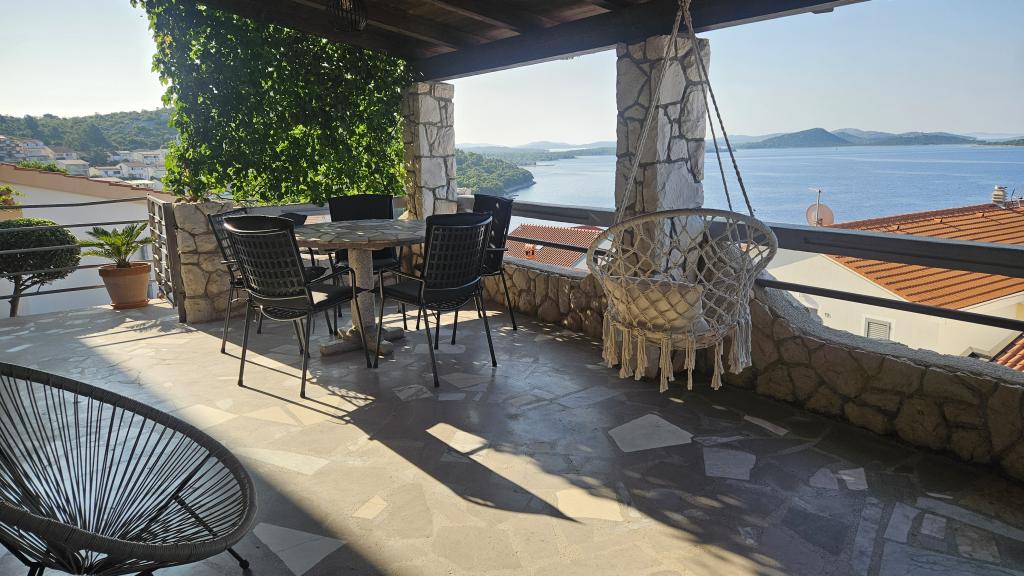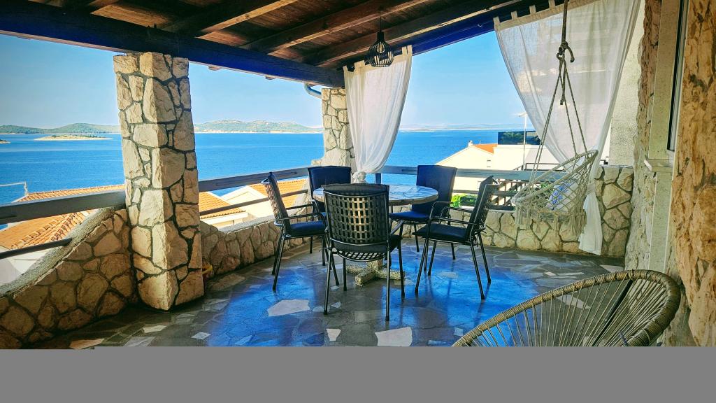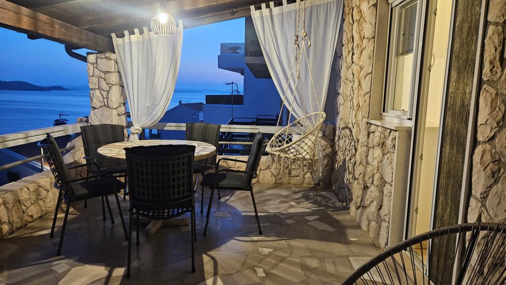 Полностью и современно оборудованные апартаменты в тихом районе с прекрасным видом на море, простирающееся до Корнати. Апартаменты расположены во втором ряду от моря, поэтому вам нужно всего лишь спуститься по лестнице к морю, где есть мощеные пляжи, кристально чистое море, прекрасная тень и запах сосен. А в непосредственной близости находится галечный пляж, который является настоящим раем для детей. Все наши апартаменты имеют охраняемую парковку, и гости также могут воспользоваться общим грилем. Рестораны и кафе на пляже находятся в 5 минутах ходьбы. , а ближайший магазин находится в 10 минутах ходьбы.
