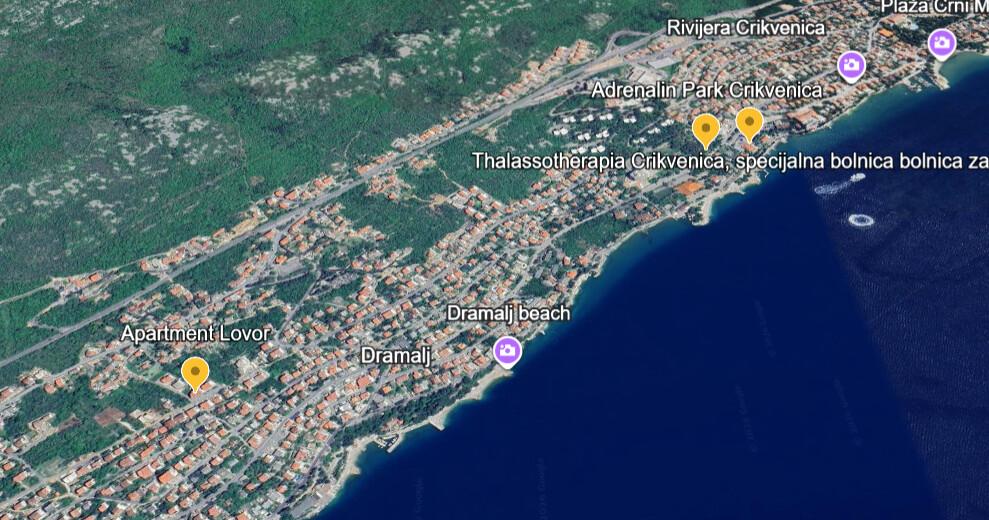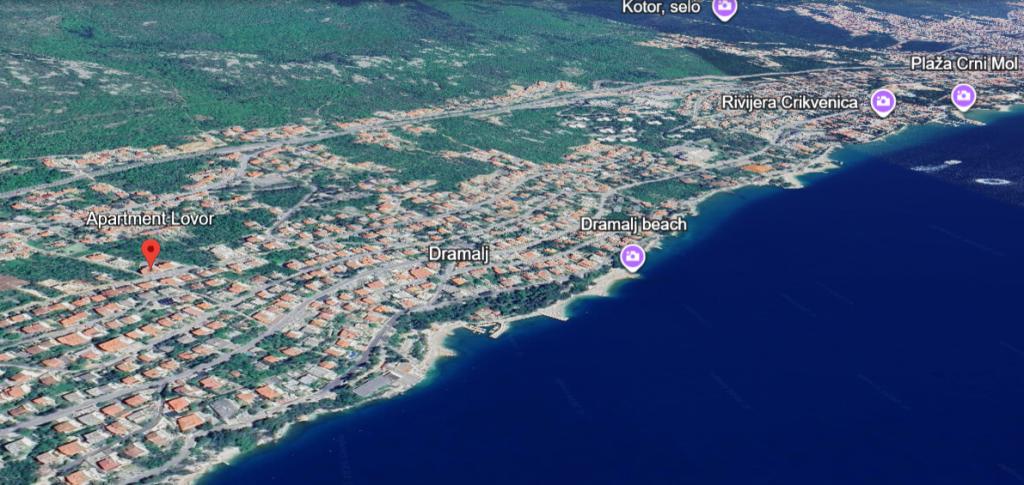 Апартаменты «Ловор» расположены в тихом и спокойном районе Драмаля, в 450 метрах (10-15 минут пешком) от моря и пляжей, в 20 минутах ходьбы от талассотерапевтического центра Цриквеница. Для любителей активного отдыха на природе апартаменты находятся недалеко от пешеходных и велосипедных маршрутов и набережных. Парковка предоставляется во дворе здания (1 парковочное место). Апартаменты «Ловор» расположены на первом этаже жилого дома и имеют площадь 31 м2 с террасой. Они идеально подходят для двух-трех взрослых или семьи с двумя маленькими детьми. В апартаментах есть одна спальня с двуспальной кроватью 160x200, кухня (на кухне есть холодильник с морозильной камерой, электрическая плита, микроволновая печь, чайник, кофеварка, тостер и вся необходимая посуда для приготовления пищи) с гостиной (диван - дополнительная кровать 75x200/150x200, телевизор с плоским экраном) и одна ванная комната с душем, а также, конечно же, терраса. В квартире есть кондиционер и бесплатный доступ в интернет (Wi-Fi).