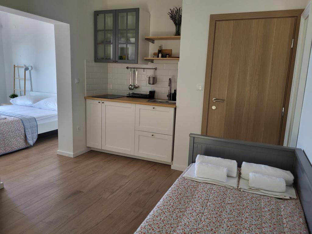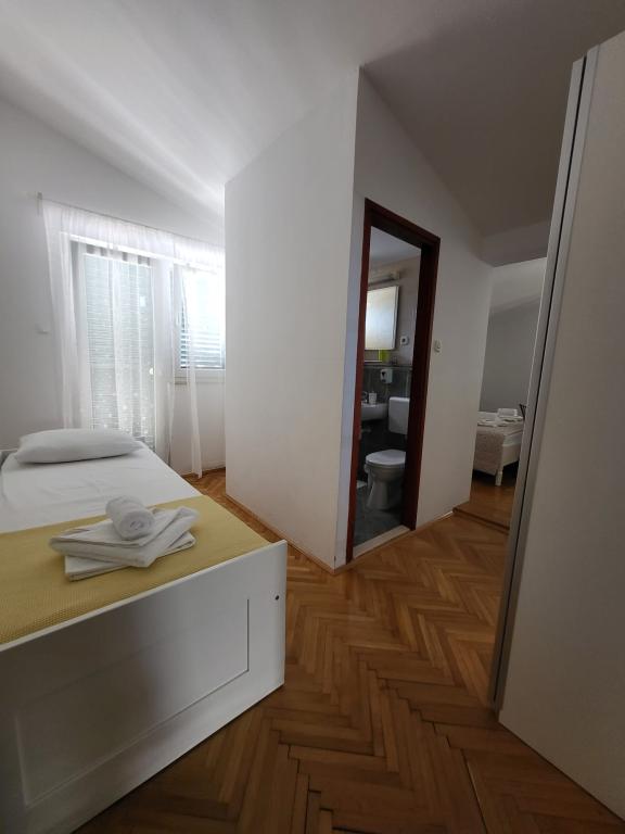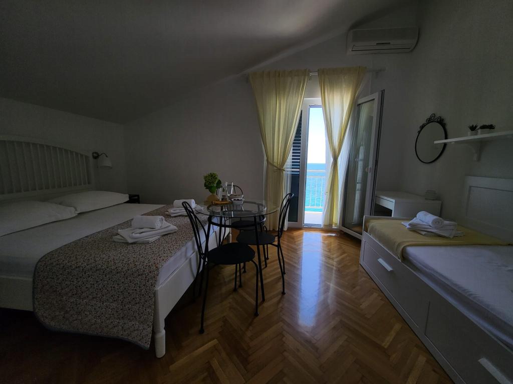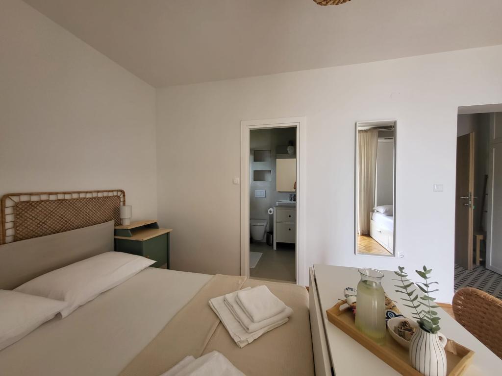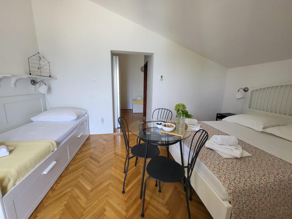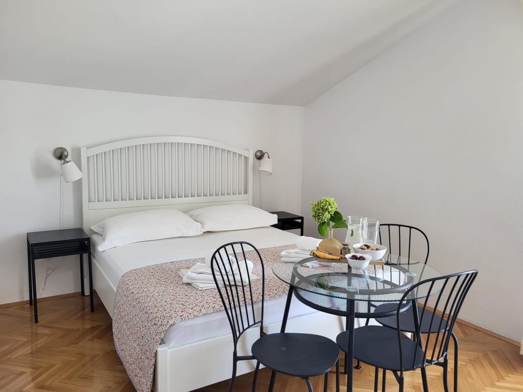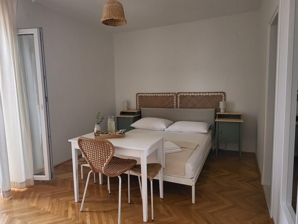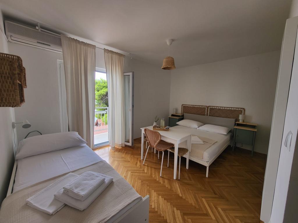 Наш семейный дом расположен в первом ряду от моря, прямо рядом с прекрасным пляжем с естественной тенью, идеально подходящим для беззаботного отдыха. Дом находится в тихом районе Градаца, идеально подходящем для семей с детьми и пар, ищущих спокойствия, умиротворения и настоящей средиземноморской атмосферы. Мы предлагаем нашим гостям 6 полностью обновленных номеров: - 3 современных номера-студии, каждый с собственным балконом; - 3 номера с собственными ванными комнатами, также с собственными балконами, и общей современной полностью оборудованной кухней. Все номера новые, светлые, уютные и спроектированы с особым вниманием к комфорту и деталям. В непосредственной близости от дома находятся кафе, рестораны, пекарня и магазин, а до самого центра города можно легко дойти пешком за 7-8 минут.
