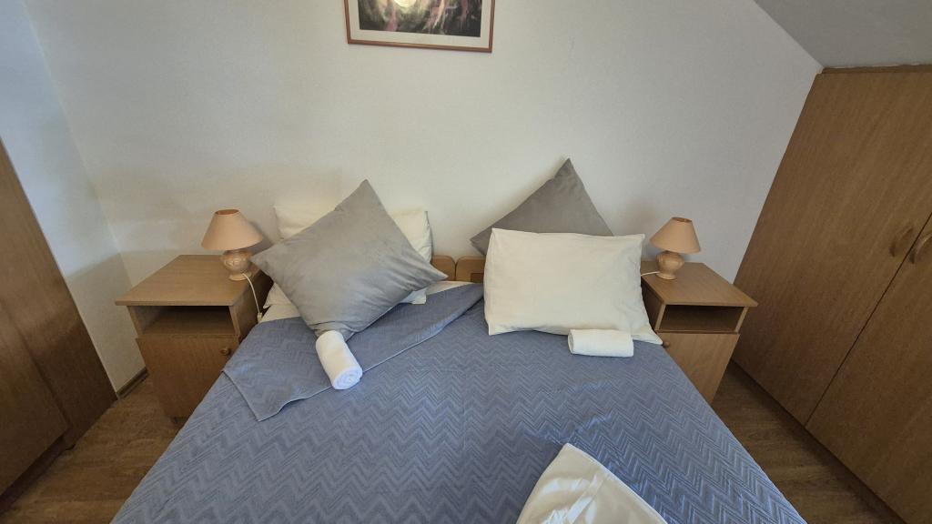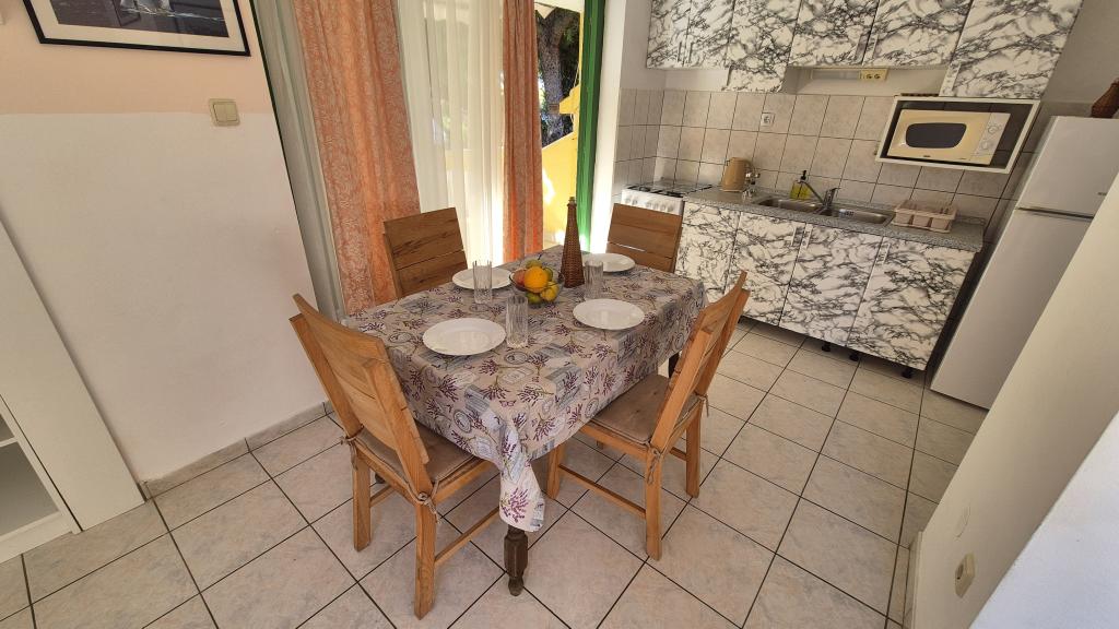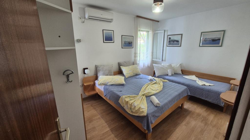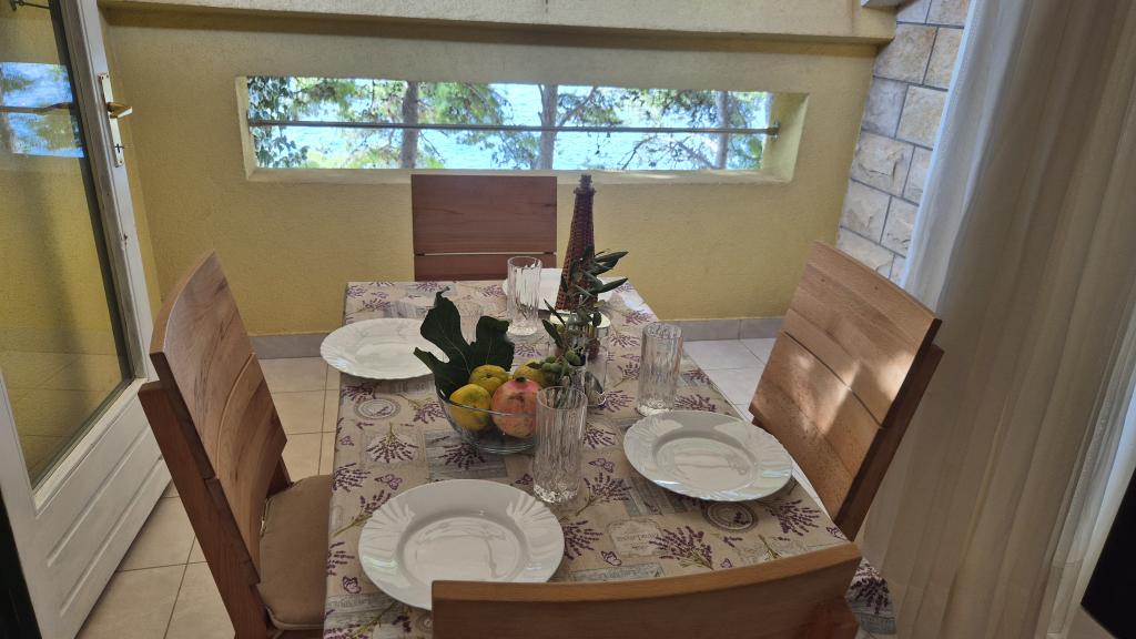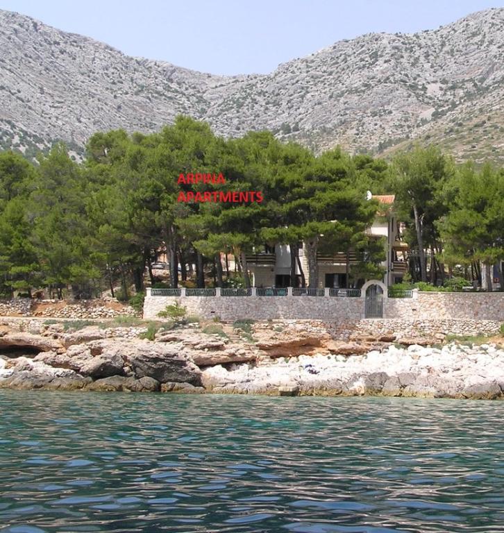 Квартиры Арпина расположены в густом сосновом лесу, в первом ряду от моря. В непосредственной близости от квартиры есть несколько галечных пляжей, а перед домом всего в 10 метрах находится каменный пляж. В отеле есть благоустроенный двор с шезлонгами и столами для гостей с открытым видом на море. Гости могут пользоваться парковкой и грилем, а по запросу можно воспользоваться стиральной машиной и детской кроваткой. Размещение состоит из 5 квартир общей вместимостью до 18 человек. Все апартаменты имеют вид на море, оснащены кондиционерами и оборудованы кухней, а во всем здании доступен WI-FI Интернет.