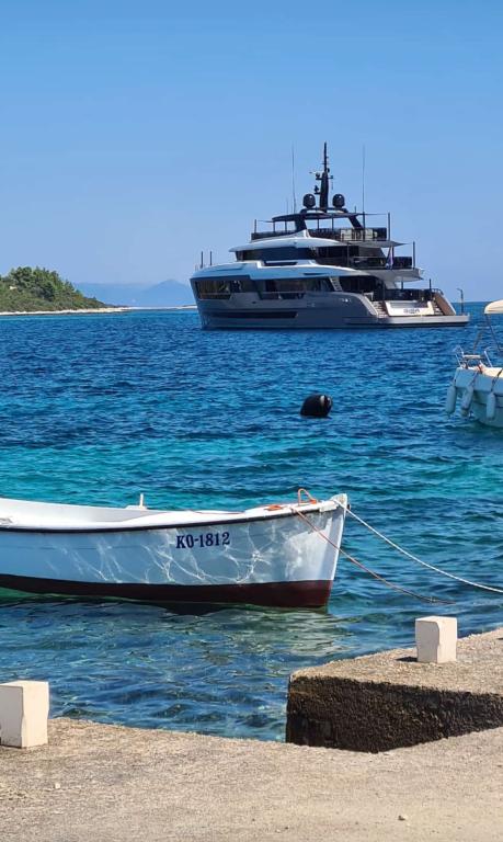 Сдается дом Шкойи на острове Корчула, рай Хорватии. Недавно построенный и полностью оборудованный, расположенный между городами Корчула и Лумбарда вдоль залива Солине, отель «Škoji» предлагает необыкновенный вид на весь залив и окружающие острова и островки. Четыре квартиры, традиционная средиземноморская минималистская архитектура и просторная гостиная на открытом воздухе с барбекю, средиземноморский сад, доски для серфинга, велосипеды и шезлонги... все коммунальные услуги... все включено в предложение. Проведите свой отпуск в месте, где вы сможете насладиться природой и приготовить еду на оливковом масле первого отжима из сада. Под домом есть небольшой пляж, достаточный для отдыха и купания, а рядом с пляжем предлагается скоростной катер Key Largo Sessa мощностью 60 л.с., на котором приятно плыть к близлежащим островам и заливам, замечательный опыт. . Имеется четыре парковочных места, на всей территории доступен Wi-Fi. Полностью оборудованные апартаменты Бадия/4+2/, Майсан/4+2/, Сутвара/4+2/ и Врник/2+2/ с прекрасным видом на море, а окружающие сады создают идеальное пространство для гостиной.