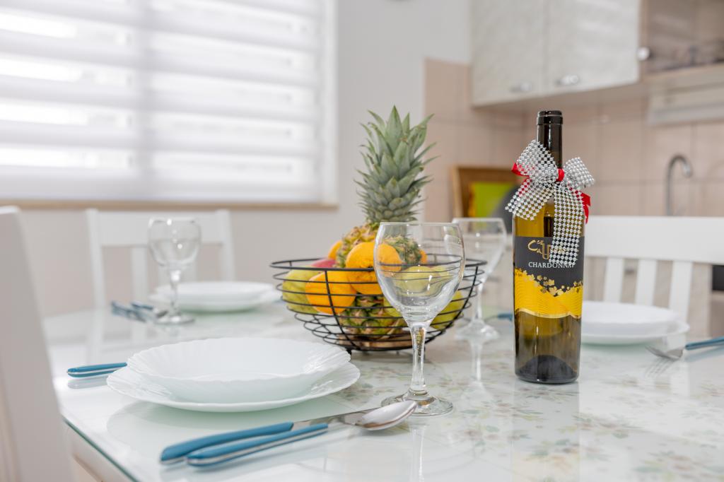 Эти уютные апартаменты площадью около 40 м² предлагают все необходимое для приятного отдыха. Размещение включает в себя: Спальня с удобной двуспальной кроватью Гостиная с диваном-кроватью (подходит для 1 взрослого или 2 детей), Smart TV и кондиционер, Полностью оборудованная кухня с посудомоечной машиной, микроволновой печью, кофеваркой и чайником, Ванная комната с душем и стиральной машиной Перед домом есть собственная терраса с обеденным столом. Также к вашим услугам общая зона барбекю - идеально для расслабляющих вечеров на свежем воздухе. Апартаменты идеально подходят для пар или небольших семей, которые ищут комфортное и хорошо оборудованное жилье в спокойной обстановке. Они предлагают идеальное сочетание покоя и комфорта, но при этом находятся всего в нескольких минутах езды от центра города. Наслаждайтесь расслабляющими моментами или исследуйте богатое предложение города с ресторанами, кафе и магазинами - все в пределах вашей досягаемости. Предоставляется парковочное место для двух автомобилей.