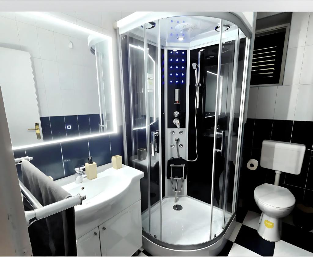 Апартаменты «Роберт» расположены в 400 метрах над старым городом. Их площадь составляет 120 м², и они состоят из двух спален, двух ванных комнат, гостиной и кухни. Перед апартаментами находится джакузи, телевизор, стол со скамейками, гриль, бассейн с шезлонгами и душем, а также частная парковка для вашего автомобиля. Добро пожаловать!