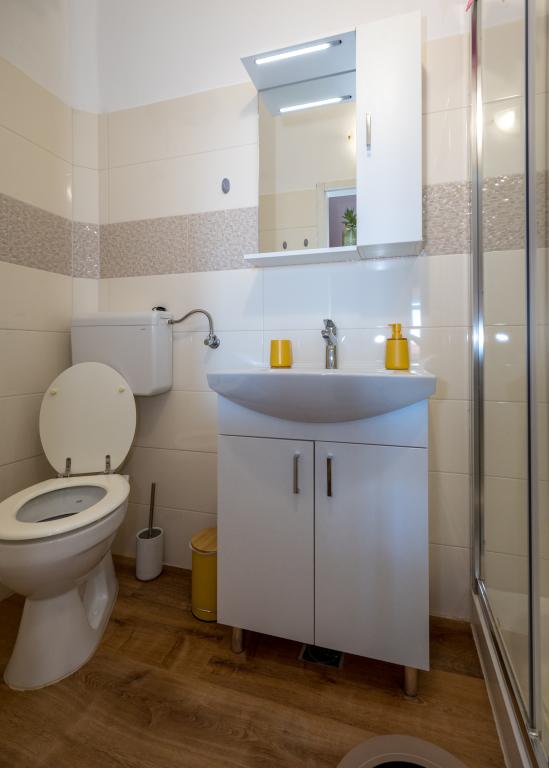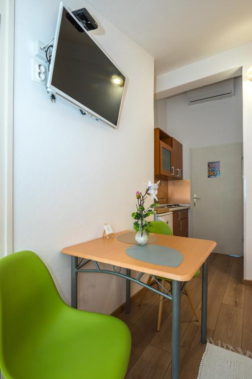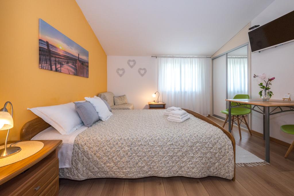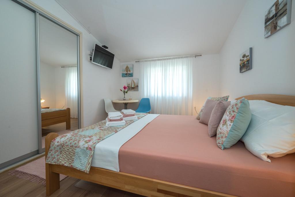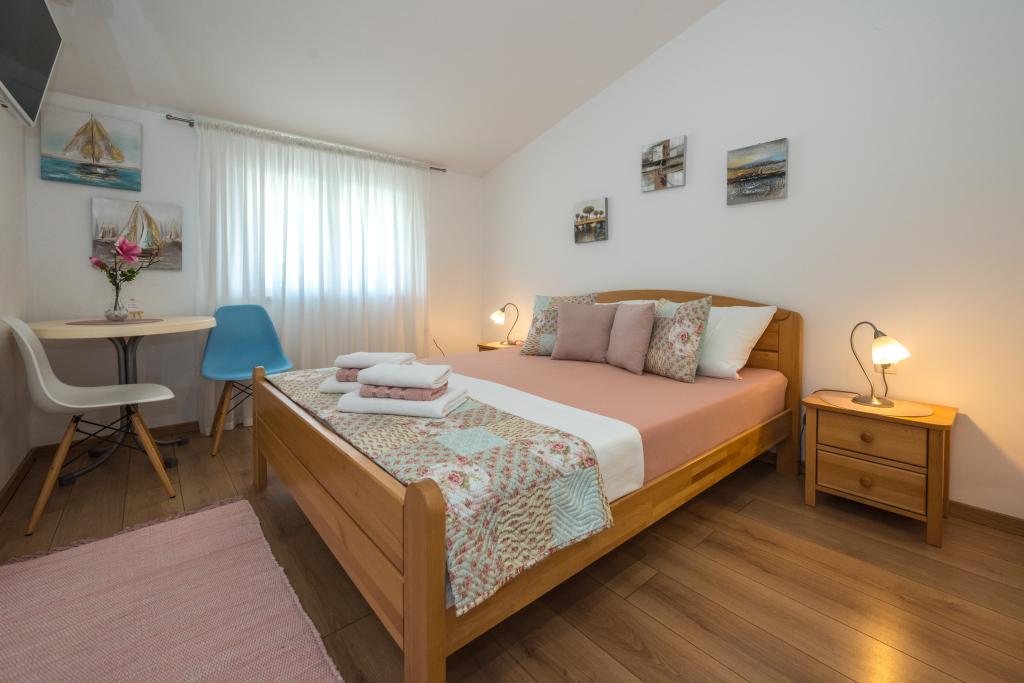 Комнаты аккуратные, современные, хорошо оборудованы и расположены на втором этаже семейного дома, перед которым находится двор для парковки автомобилей гостей. Сам дом расположен в красивом, очень туристическом районе Макарски, примерно в 90 м от городского пляжа, в радиусе 200 м от которого находятся 8 отелей. Хозяин имеет многолетний опыт работы в туристической индустрии. В 500 м от дома находится теннисный центр и аквапарк, в 800 м — главный городской парк со спортивно-развлекательными сооружениями, а в 1000 м — начало центра города. В 100 м находится дайвинг-центр, а на таком же расстоянии — отель «Биоковка», предлагающий крытые бассейны, сауны, тренажерные залы, физиотерапию и массаж. Среди близлежащих достопримечательностей — Музей раковин в городе, природный парк Биоково со знаменитой смотровой площадкой Skywalk, Красное и Голубое озера в Имотски, туристические прогулки на катере на остров и в город Корчула, а также знаменитый пляж Златни рат на острове Брач.