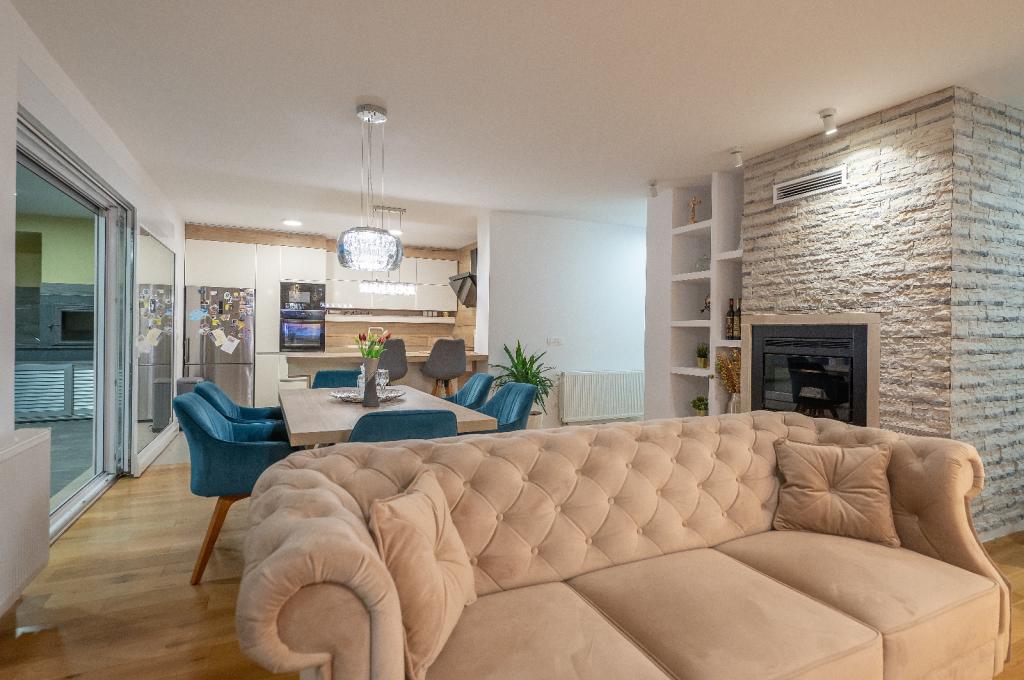 Пентхаусы Jure и Nikola в Макарске — это роскошные и просторные апартаменты площадью 135 м², идеально подходящие для комфортного и расслабляющего отдыха. Каждые апартаменты состоят из трех элегантно оформленных спален, двух современных ванных комнат, гаража и большой террасы с захватывающим видом на море и город, идеально подходящей для отдыха и расслабления. Расположенные в тихом районе, они находятся в 2 км от центра города и в 1 км от моря, обеспечивая идеальное сочетание уединенности и близости ко всем удобствам.