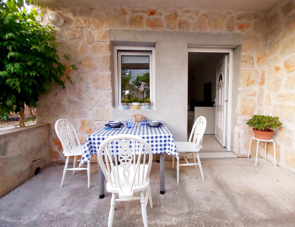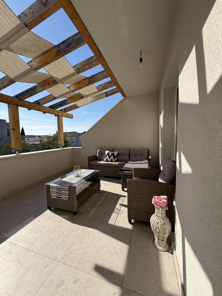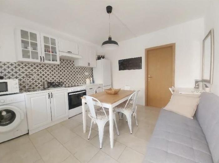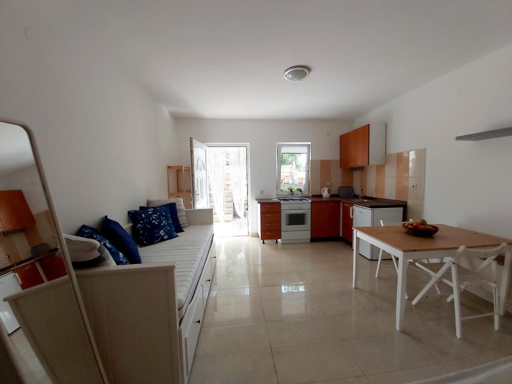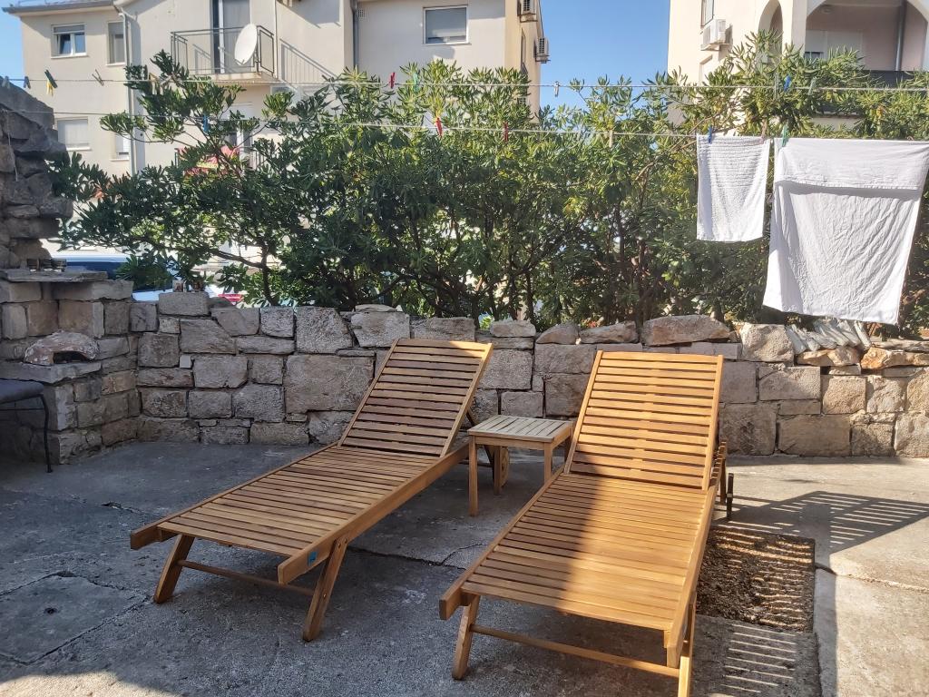 Квартира-студия с террасой площадью 12 м2. Квартира рассчитана на 2 человек. Большая двуспальная кровать, полностью оборудованная кухня, обеденный стол, ванная комната. Терраса и обеденный стол. Охраняемое парковочное место перед квартирой на одно транспортное средство. Рядом с пляжем. До пляжа Сланица 5 минут пешком, до центра Муртера 7 минут пешком.