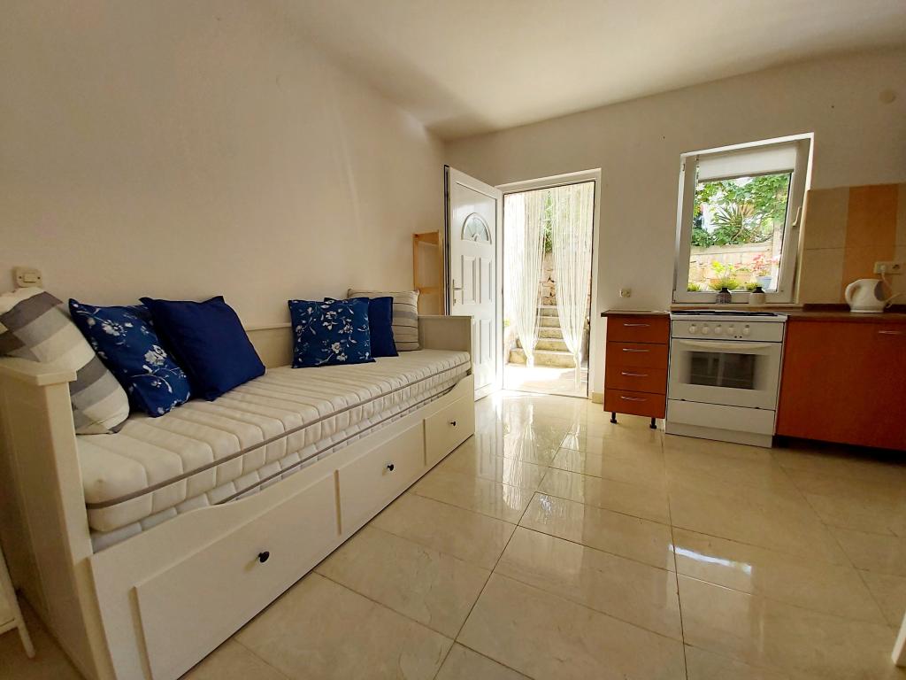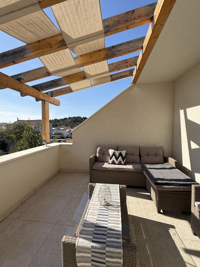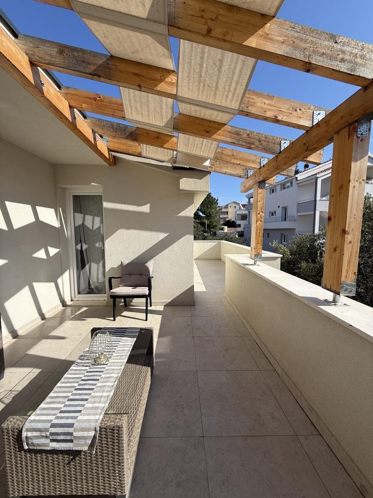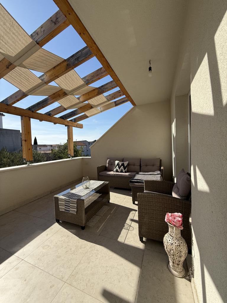 Квартира-студия с террасой площадью 12 м2. Квартира рассчитана на 2 человек. Большая двуспальная кровать, полностью оборудованная кухня, обеденный стол, ванная комната. Терраса и обеденный стол. Охраняемое парковочное место перед квартирой на одно транспортное средство. Рядом с пляжем. До пляжа Сланица 5 минут пешком, до центра Муртера 7 минут пешком.