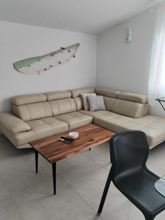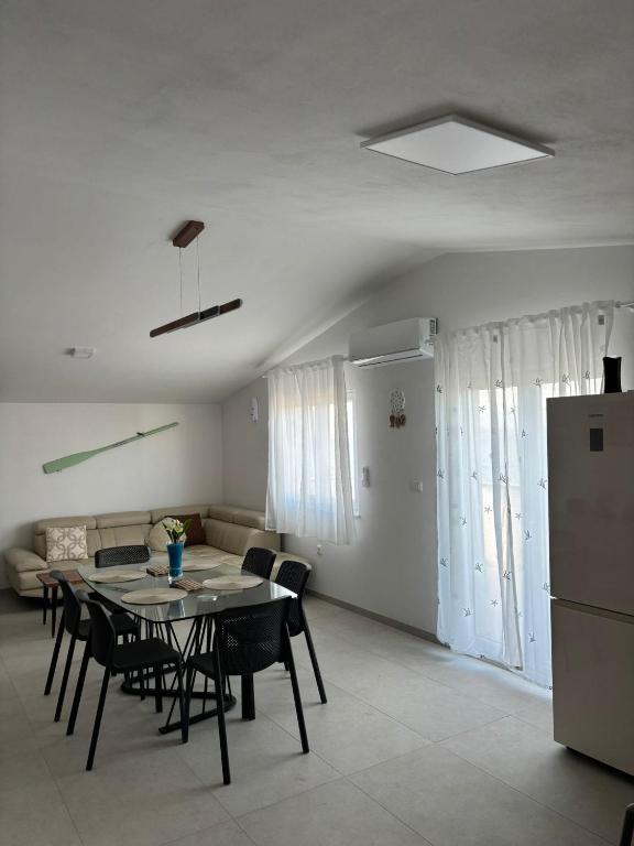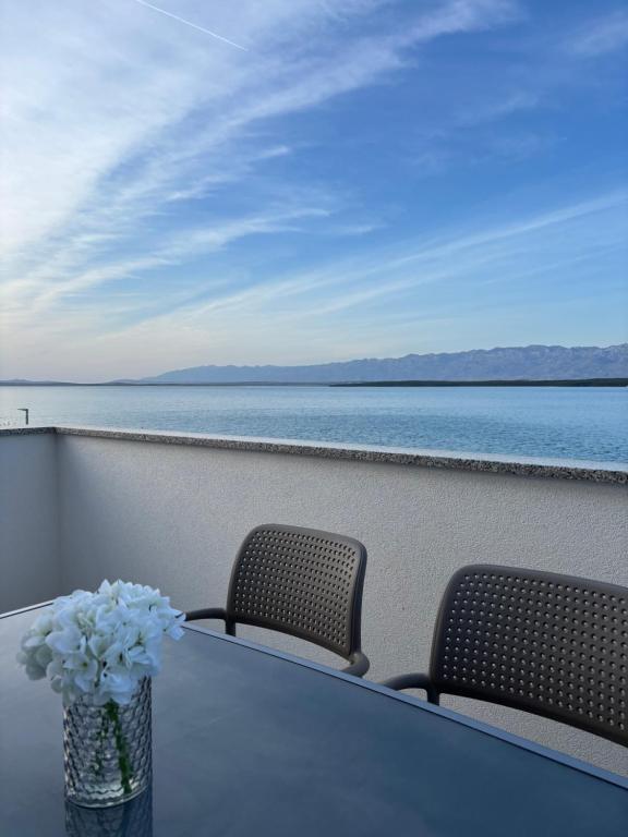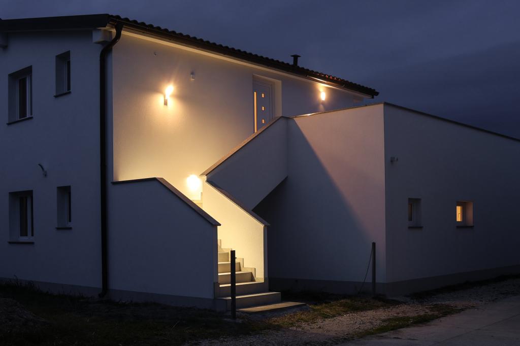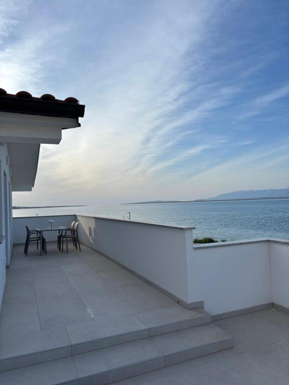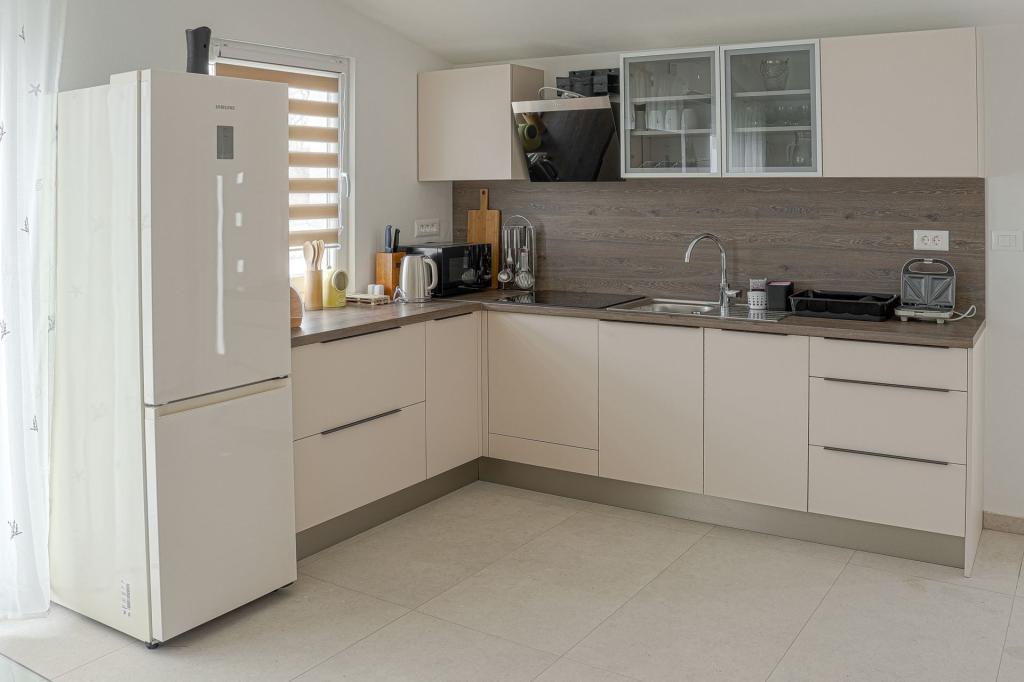 Просторные, недавно отремонтированные и полностью оборудованные апартаменты, расположенные всего в 15 метрах от моря. Апартамент 1 находится на первом этаже (100 м² включая террасу) и имеет частный сад, в то время как Апартамент 2 расположен на верхнем этаже (70 м² с балконом площадью 50 м²), что делает их идеальными для семей и групп друзей. Каждый апартамент включает две спальни, гостиную, кухню и ванную комнату. Гостям предоставляются кондиционер, телевизор и Wi-Fi. На территории также есть частная парковка и открытый душ. Особое впечатление производят волшебные закаты и потрясающий вид на горный массив Велебит.