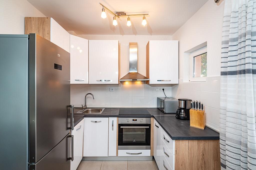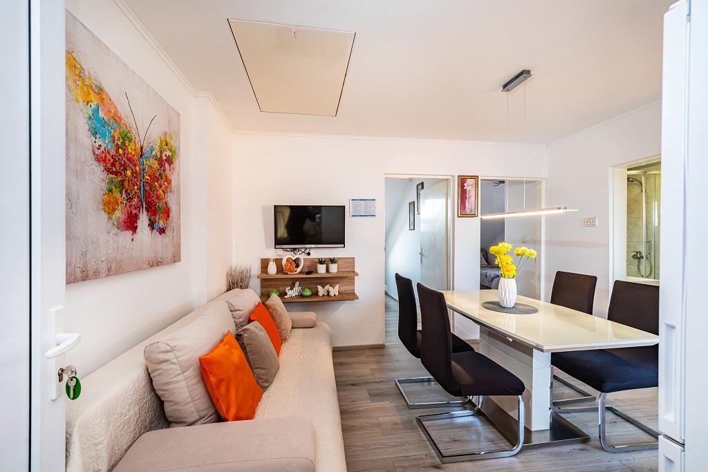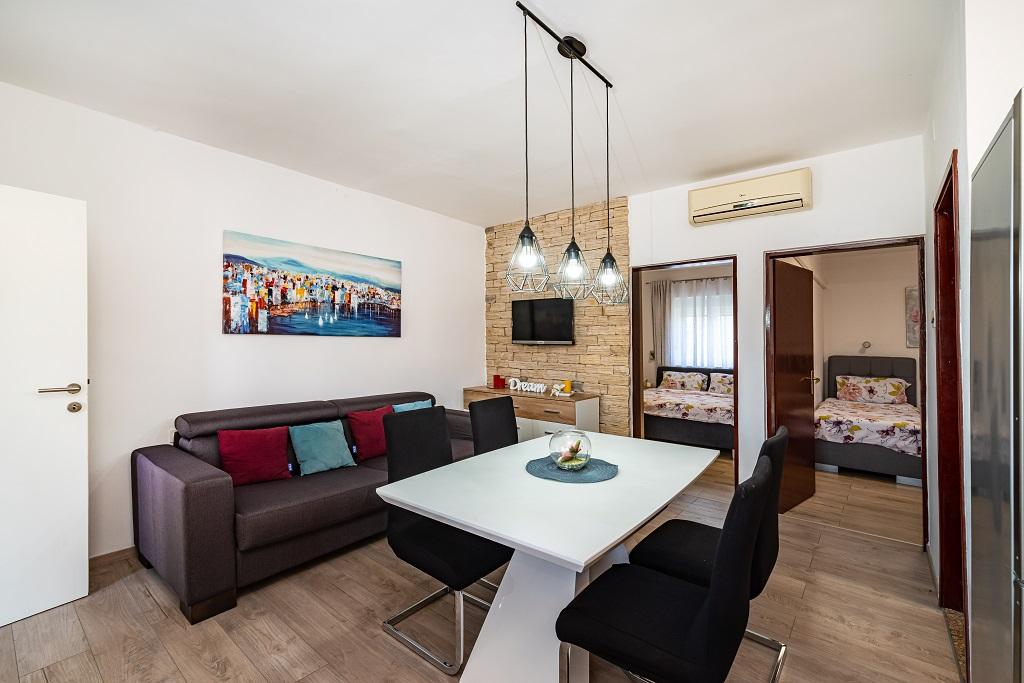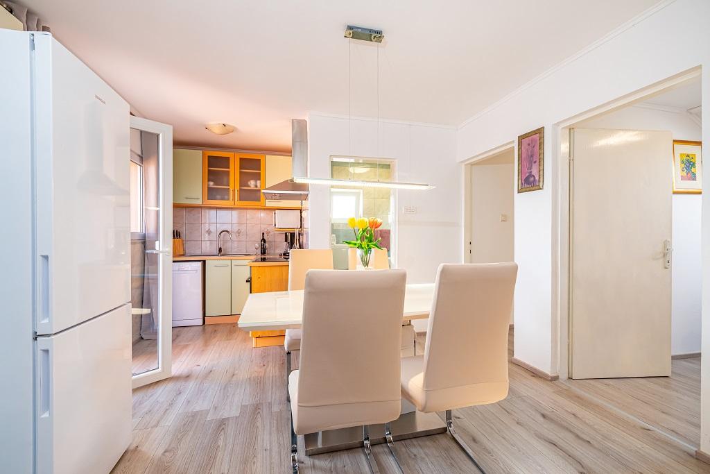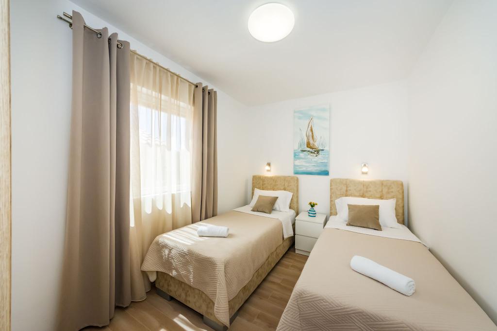 Наши современные апартаменты расположены в Нине, прибрежном городе в южной части Нинского залива на полуострове Ждрияц, в 17 км к северу от Задара. Это старейший королевский город в Хорватии, расположенный недалеко от знаменитого песчаного пляжа Ждрияц. Нин – это не только исторический город. Вместе со своими окрестностями он также предоставляет благоприятные условия для отдыха и развлечений. Вокруг Нина расположены несколько длинных песчаных лагун с песчаными пляжами, вдали от толп туристов, и промышленная зона с отличным микроклиматом. Апартаменты расположены в красивом и очень тихом районе, менее чем в пяти минутах ходьбы от пляжа и Адриатического моря. Дом двухэтажный. Хозяева живут на первом этаже, две квартиры – на втором, и две – на третьем. Дом отдельно стоящий, участок огорожен, поэтому он очень подходит для детей. Также имеется парковка на пять автомобилей и барбекю в саду. Апартаменты не приспособлены для инвалидных колясок. Доступен беспроводной интернет. Пляж и море находятся всего в 100 метрах от апартаментов, а другие объекты инфраструктуры — в 600 метрах.