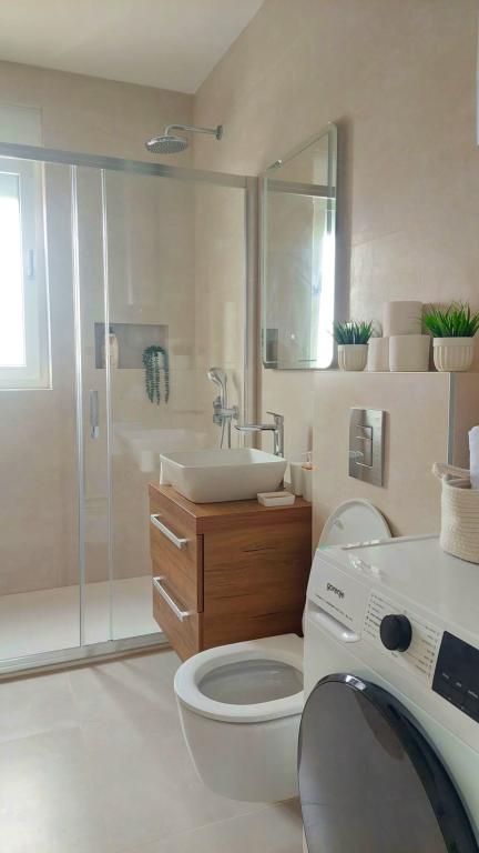 Апартаменты расположены в новом здании в Новале и предлагают прекрасный вид на море. Они полностью оборудованы новой современной мебелью, что обеспечивает комфортное и беззаботное пребывание. В каждой комнате апартаментов установлен кондиционер, а по всей квартире – теплый пол. Гости могут воспользоваться частной парковкой и полностью оборудованной кухней для приготовления пищи. Для дополнительного удовольствия предоставляются доска для сапсерфинга и электросамокат. Пляж находится всего в 350 метрах, а центр Новали – в 1,5 км. Через дорогу расположен магазин, что делает проживание еще более удобным.
