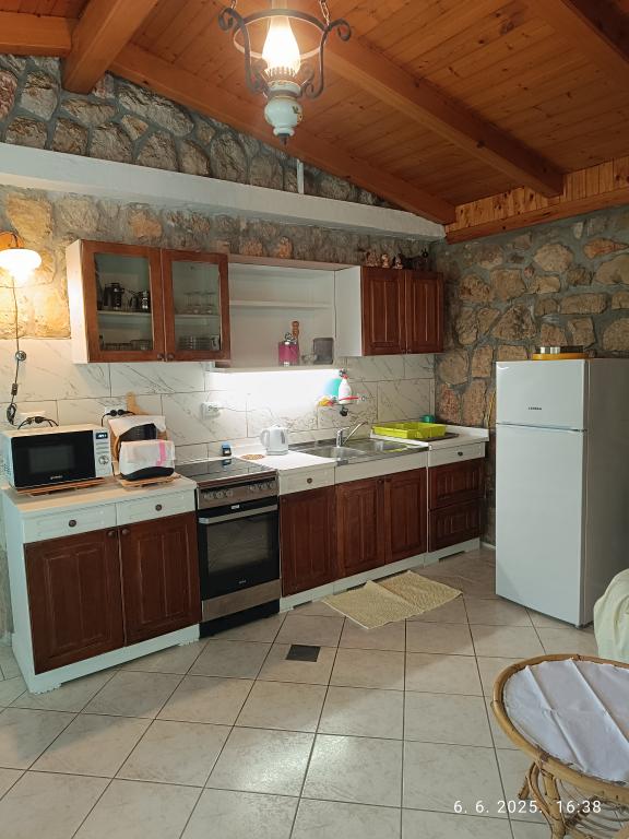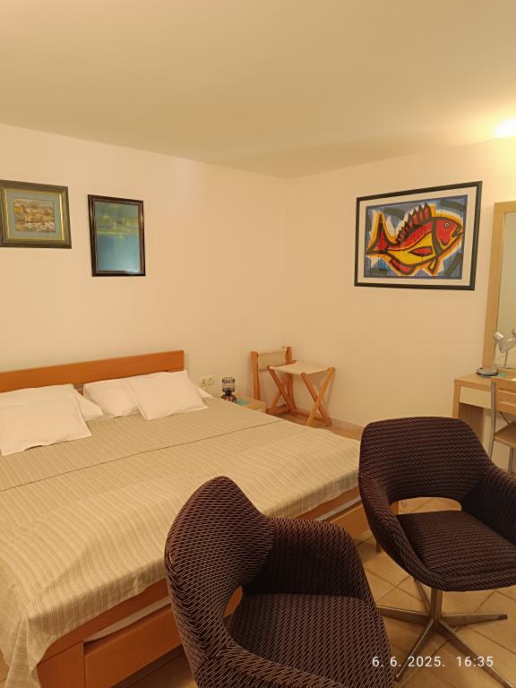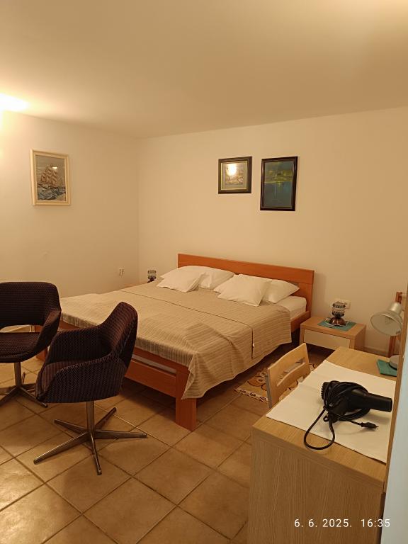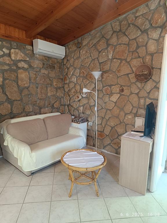Две большие двухкомнатные квартиры (60 м2) расположены на 2 этаже дома с прекрасным видом на море, а однокомнатная квартира поменьше (45 м2) расположена в отдельном каменном (деревенском) доме рядом с главный дом, с которым он разделяет сад и двор. Предоставляется бесплатная парковка. Все гости могут пользоваться принадлежностями для барбекю и террасой в саду. Расстояние от моря ок. 250 м вниз по склону, где находится набережная с ресторанами и различными типами пляжей. Расстояние до центра около 1,5 км, по набережной у моря.