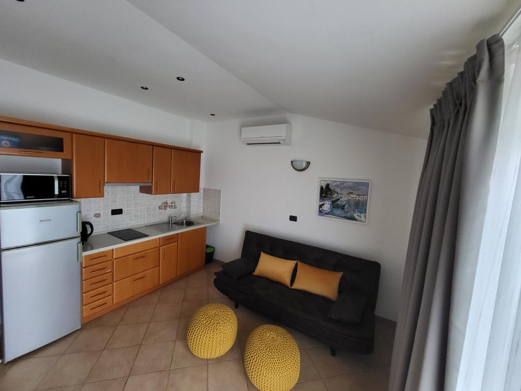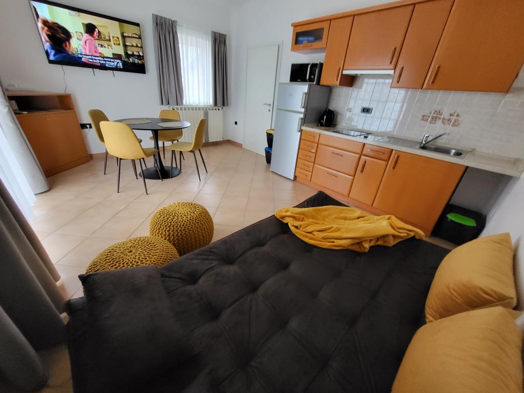 Для обеспечения большего комфорта мы сдаем квартиры исключительно для максимум двух человек. Дом с двумя квартирами расположен в тихой части Новиграда. Добраться до поселка очень просто, расстояние от главной дороги достаточно, чтобы не ощущать влияния транспорта. Улицами поселка пользуются только местные жители и гости, движение транспорта практически отсутствует. Перед домом достаточно места для парковки. Две квартиры в доме гарантируют высокий уровень отдыха, а также тишину и теплые отношения. Им оказывается поддержка в течение всего года. Каждая квартира имеет площадь 40 м² и отдельный вход. В квартире на первом этаже есть собственная терраса, а в квартире наверху — балкон. Квартира рассчитана на двух человек. В номере есть отдельная спальня с двуспальной кроватью. Кухня полностью оборудована. Квартиры оборудованы кондиционерами. В апартаментах есть центральное отопление, поэтому они подойдут любителям велоспорта в любое время года. Размещение домашних животных не допускается.
