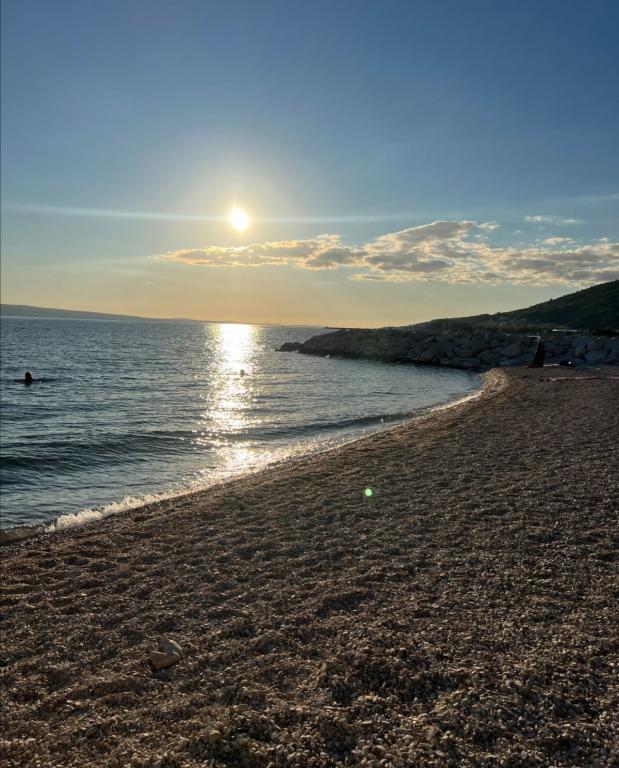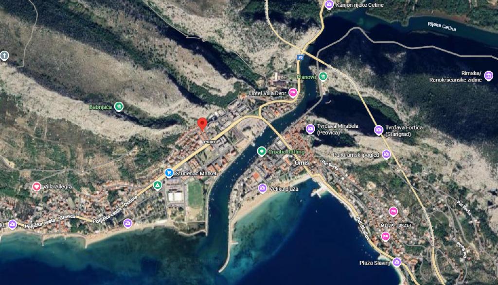 Апартаменты «Пикколо» расположены в 5-10 минутах ходьбы от старого города Омиша и примерно в 5-7 минутах ходьбы от песчаного пляжа (Велика плажа). Их площадь составляет 25 м² и состоит из гостиной с обеденной зоной и небольшой кухней, отдельной спальни и ванной комнаты с душем и стиральной машиной. На хорошо оборудованной кухне гости найдут микроволновую печь, холодильник, плиту, кофеварку, чайник и посуду. Апартаменты были частично отремонтированы в 2024 году. Они расположены в жилом доме, с отдельным входом, через лестницу на террасу с южной стороны здания. Гостям предоставляется бесплатная парковка, Wi-Fi, кондиционер (все включено в цену). Типы кроватей: 1 двуспальная кровать и диван-кровать. Количество человек: 2.