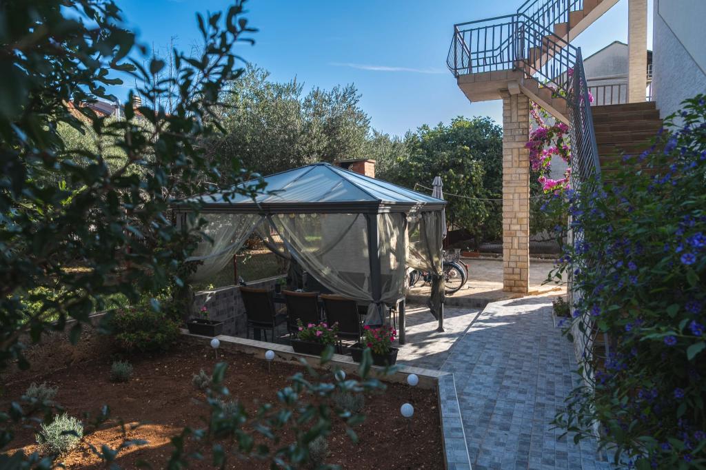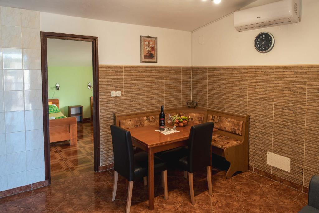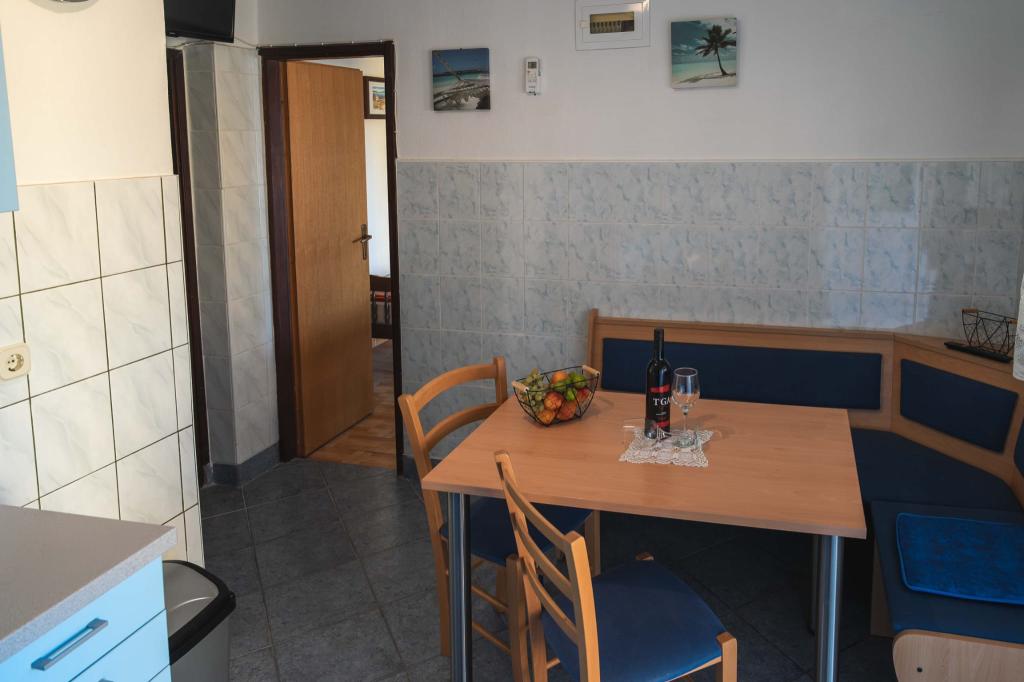 Четыре APP (2 2), в тихой части Пакостане. Приложение состоит из спальни, где двойной и тройной шкаф. Гостиная с кроватью (200x140), стол с четырьмя стульями, а в одном углу кухни. Кухня состоит из sudopra, печи kuhanhe с печью и холодильником. Квартира принадлежит кондиционером и телевизором. В передней части террасы APP с столом и четырьмя стульями для вашего приложения. APP находится на первом этаже частного дома. Двухкомнатные апартаменты состоят из двух спален, кухня, столовая и ванная комната с душевой кабиной. В апартаментах есть большая терраса с видом на море, кондиционер. ТВ. Во дворе барбекю детские качели и парковка на огороженной территории.