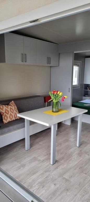 Мобильные дома расположены в центре Пакоштане, прямо рядом с главным песчаным пляжем, с прямым видом на море. В мобильном доме две спальни, столовая, кухня, туалет и большая терраса (5). Все гости могут пользоваться мангалом. Гостям предоставляется парковочное место. Допускается размещение с домашними животными, но за каждое животное взимается дополнительная плата в размере 7 евро/ночь. У нас есть собственная пристань для лодок и парковка для прицепов, которые доступны гостям за дополнительную плату.