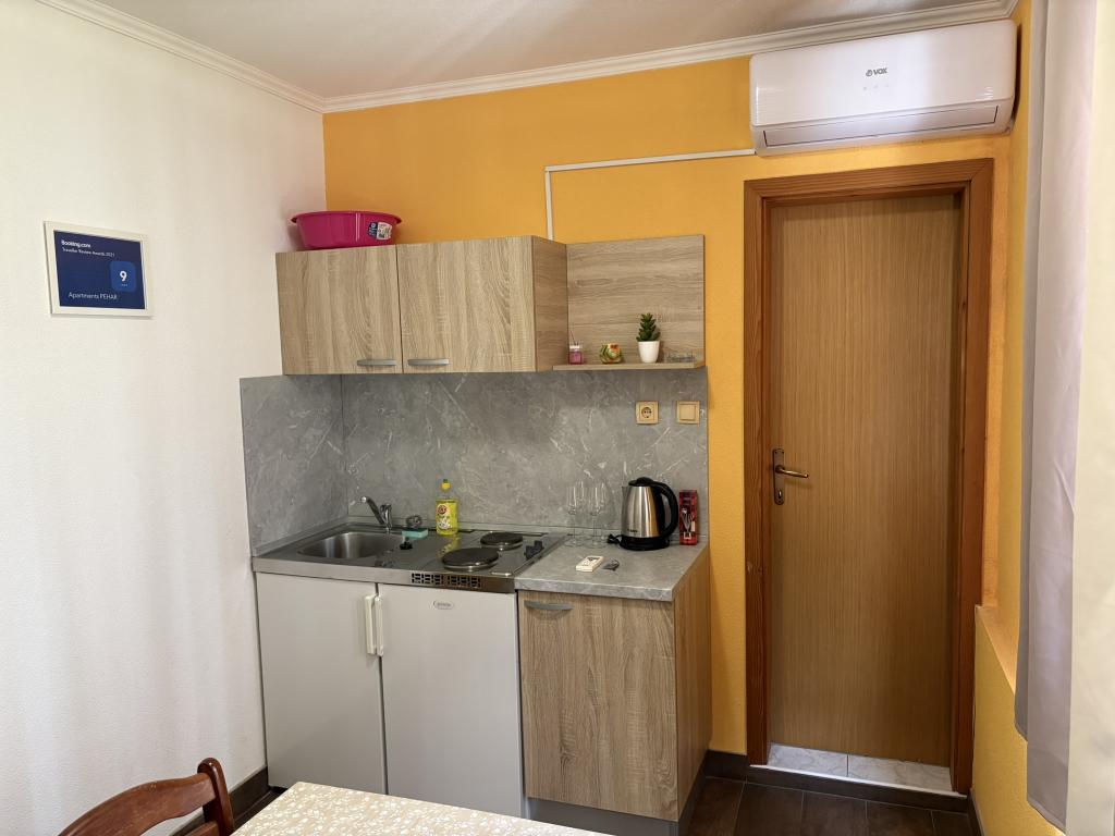 Макарская Ривьера, Подача. 6 апартаментов-студий и 3 апартамента расположены в Подаче, в 70 шагах от моря. Доступ к пляжу без ступенек, в 200 метрах. Центр города, магазин, почта, детский парк и автобусная станция находятся всего в 200 метрах. Бесплатный Wi-Fi и кондиционер в каждых апартаментах.