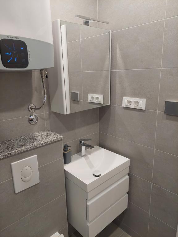 Квартира полностью отремонтирована и оборудована современной кухней и ванной комнатой. Ближайший пляж находится примерно в 2-3 минутах ходьбы от квартиры, а центр города с ресторанами и кафе — примерно в 10 минутах ходьбы. С балкона открывается частичный вид на море.