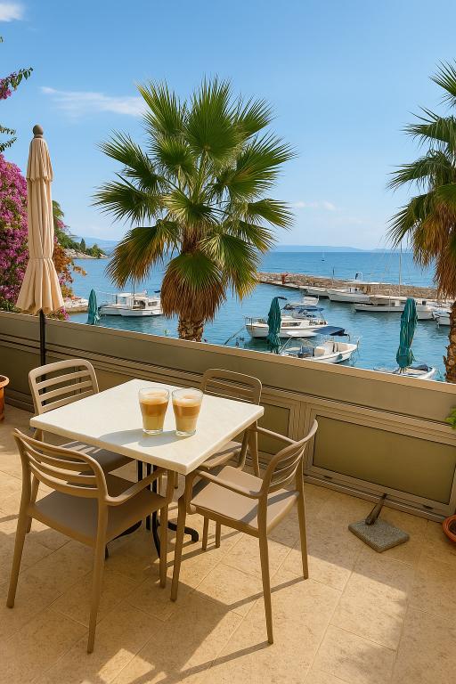 Красивая, красивая квартира. Новые, с большим количеством тщательно подобранных деталей!, Замечательные и дружелюбные владельцы, удобное расположение, дополнительная терраса с прекрасным видом на море и пристань для яхт. Лучшее место для отдыха в Подгора. Мы рекомендуем всем квартирам немного !!!