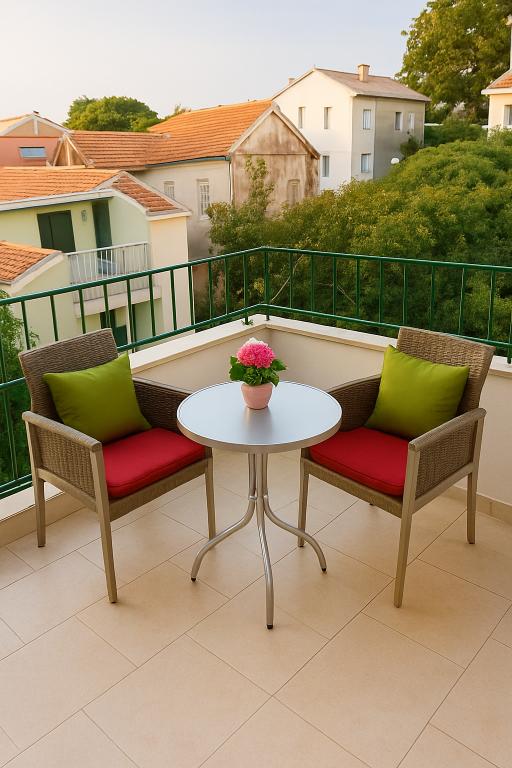 Апартаменты великолепны: потрясающий вид из окна, хорошая мебель, сантехника, достаточное количество посуды. Вечерами было приятно сидеть на балконе и смотреть на море. Дружелюбные хозяева, очень много нам помогали. Недалеко от апартаментов лучший пляж в Подгоре: широкий, мелкая галька, сосны, чистейшая вода, людей немного.