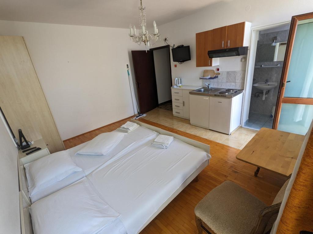 Наш семейный дом расположен всего в нескольких метрах от центра Подгоры. В нескольких минутах ходьбы находятся самые красивые пляжи Подгоры, окруженные соснами, которые защитят вас и ваших детей от палящего солнца.