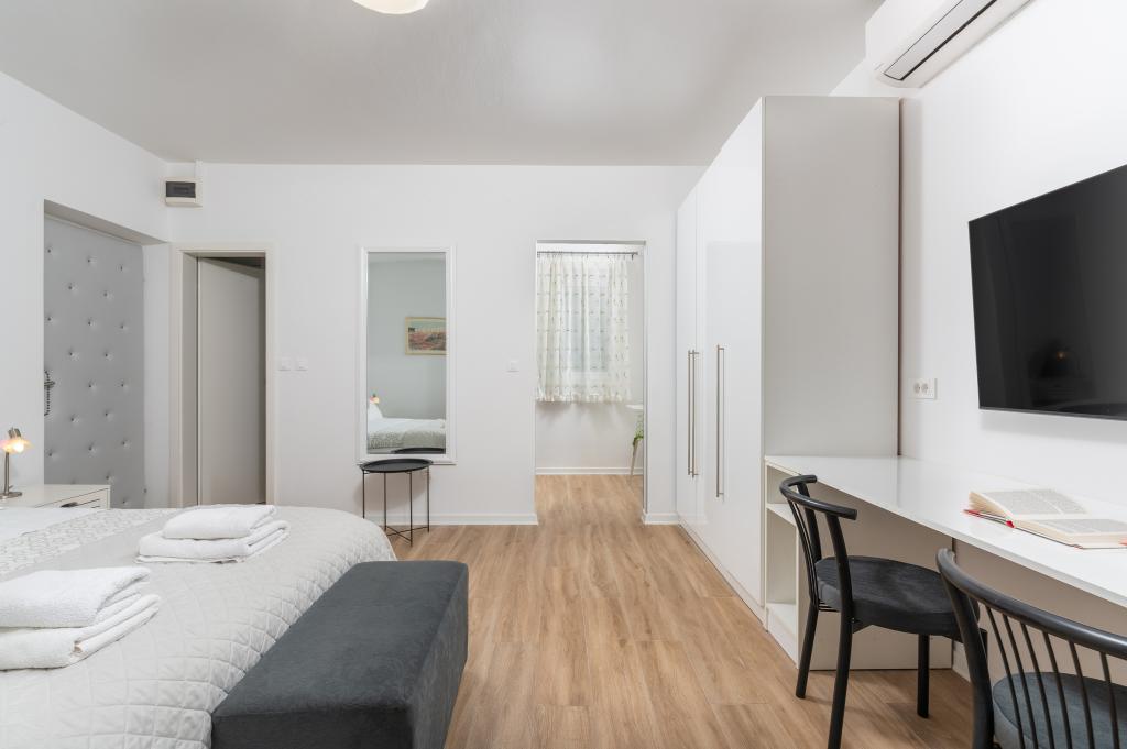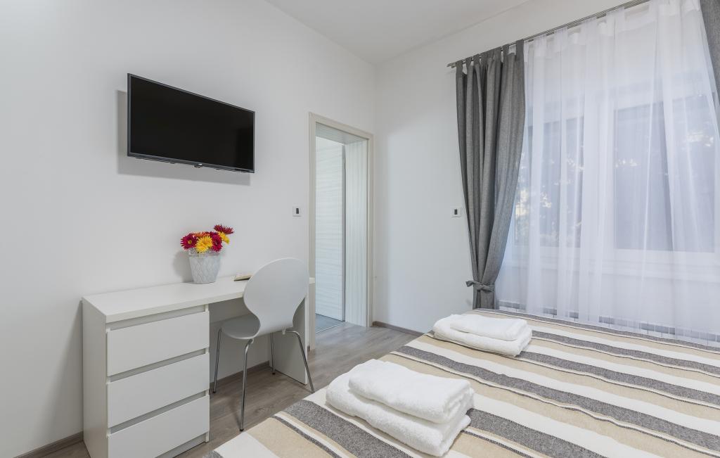 Наши апартаменты расположены в красивом и тихом жилом районе, идеально подходящем для отдыха от летней суеты, но при этом недалеко от всего необходимого. В 10-15 минутах неспешной прогулки находится прекрасный пляж Борик или оживленный исторический центр Пореча. Большой супермаркет расположен всего в 4 минутах ходьбы, что очень удобно для семей.