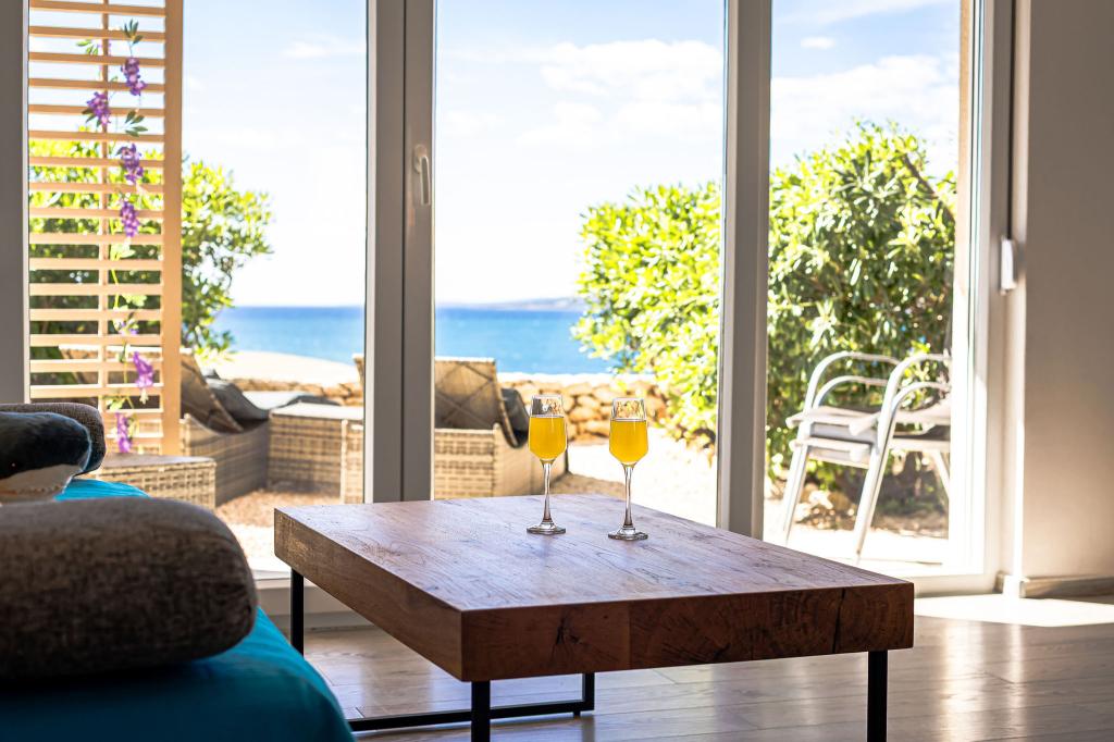 Апартаменты MORE I MIR расположены в тихой части Повляны, на полуострове Раставац, всего в 150 метрах от моря и песчаного пляжа Трокут. Квартира расположена на первом этаже и полностью оборудована всеми удобствами для приятного отдыха. В апартаментах имеется 2 спальни с двумя ванными комнатами, гостиная и кухня. Дополнительные спальные места в гостиной (раскладной диван и кресло). Квартира полностью оборудована кухонной техникой, 3 кондиционера, 3 телевизора. Владельцы апартаментов имеют доступ к бесплатной парковке и интернету, бассейну, возможности пользоваться барбекю, душем на открытом воздухе и общей игровой площадкой (горка, настольный теннис и т. д.). В апартаментах есть собственная терраса и сад с шезлонгами и местами для отдыха, вид на море, 1-й ряд. В непосредственной близости находятся кемпинг, пекарня, магазин и ресторан. Повляна, благодаря своим прекрасным песчаным и галечным пляжам и чистому мелкому морю, предлагает качественный отдых для семей; центр находится в 3,6 км.