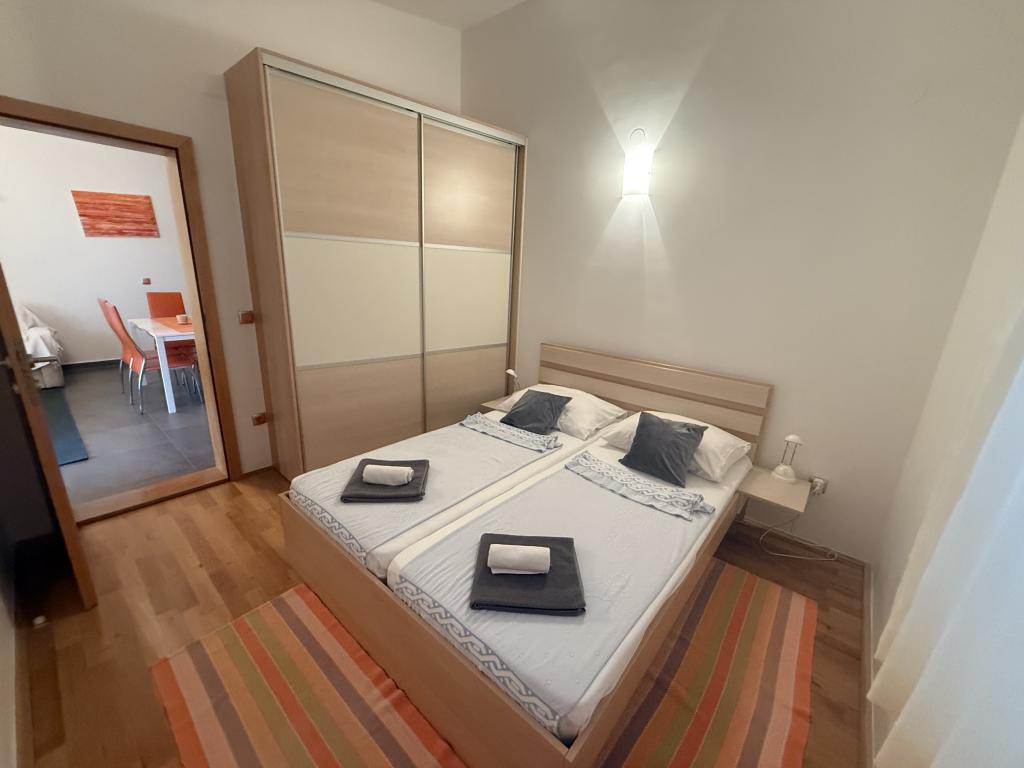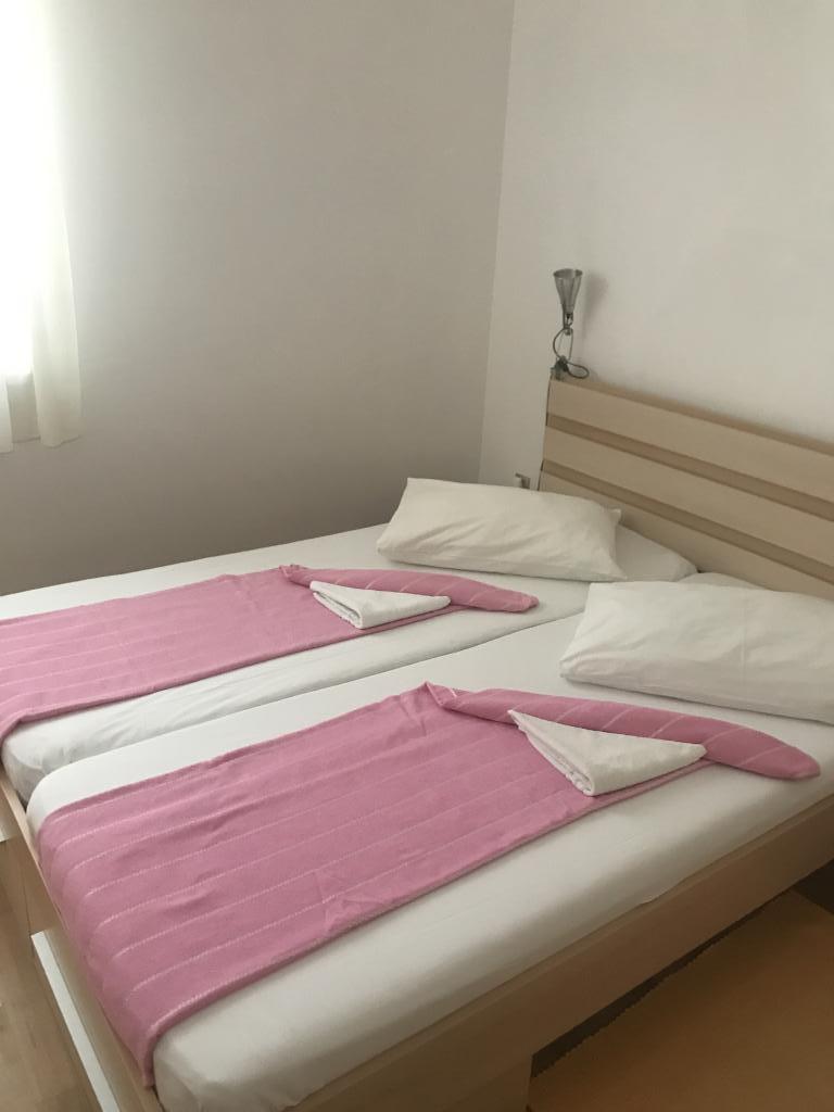 Апартаменты, идеально подходящие для семейного отдыха. Мы предлагаем три практически идентичных апартамента, каждый из которых адаптирован для комфортного семейного отдыха. Каждые апартаменты состоят из: гостиной с обеденной зоной и кухней; двух спален: родительской (160x200) и детской (140x200); гостиной с диваном. Кухня оборудована стандартными духовками с индукционной плитой, небольшим холодильником, чайником и кофеваркой, а также всей необходимой посудой. В ванной комнате есть душевая кабина, она небольшая, но функциональная. Каждые апартаменты имеют тихий уголок в виде лоджии с раздвижной стеной. На всех окнах установлены москитные сетки. Для наших гостей также доступен мангал на открытом воздухе со столом и стульями. Мы придерживаемся очень высоких стандартов гигиены, что для нас особенно важно. В стоимость включено: кондиционер; туристический налог; спутниковое телевидение (у нас нет Smart TV); полный набор посуды и постельного белья; одно полотенце для каждого гостя. Размещение с домашними животными возможно по договоренности и по специальной цене.