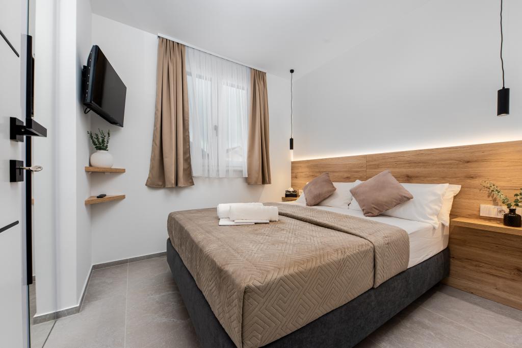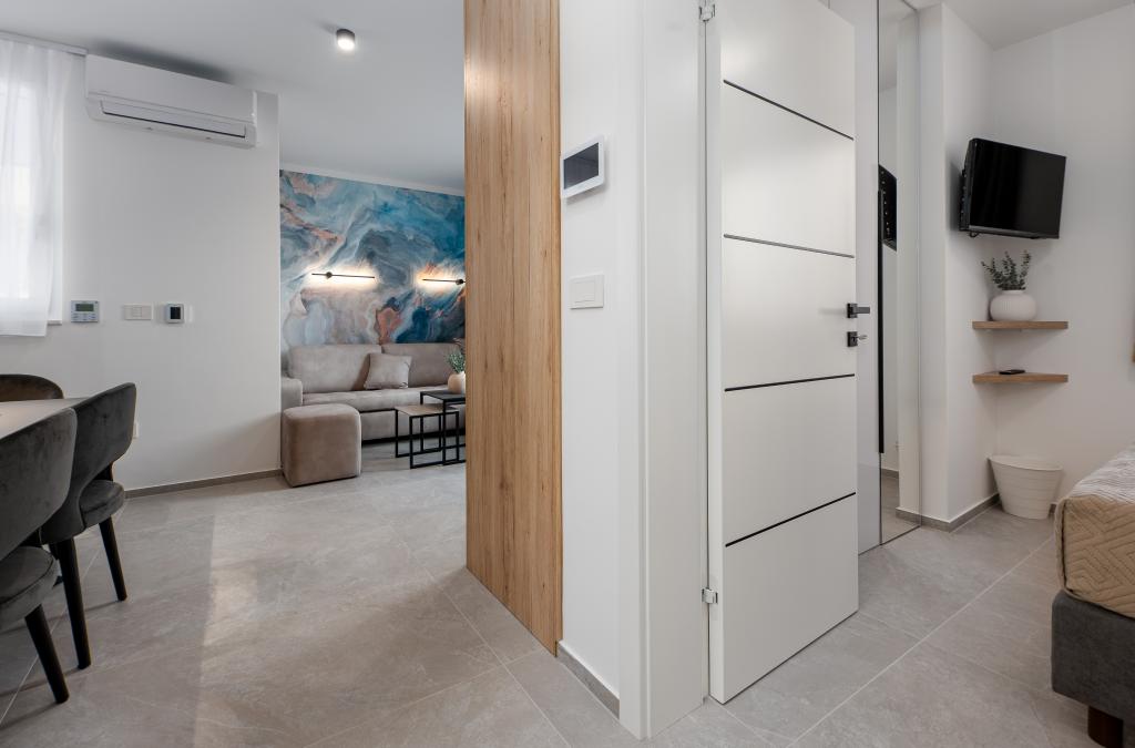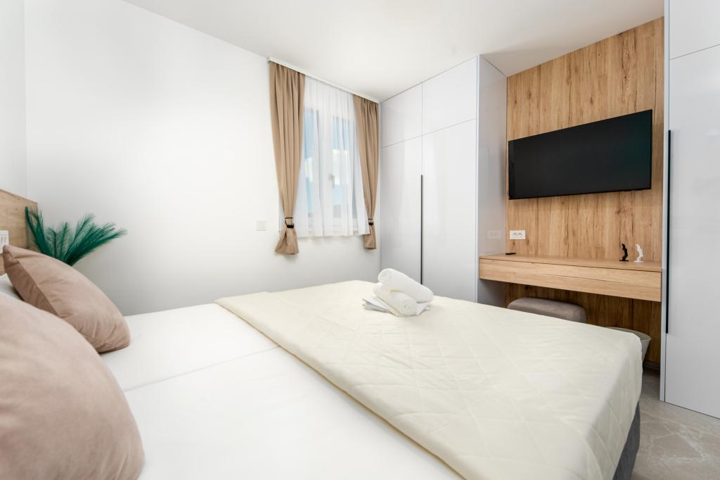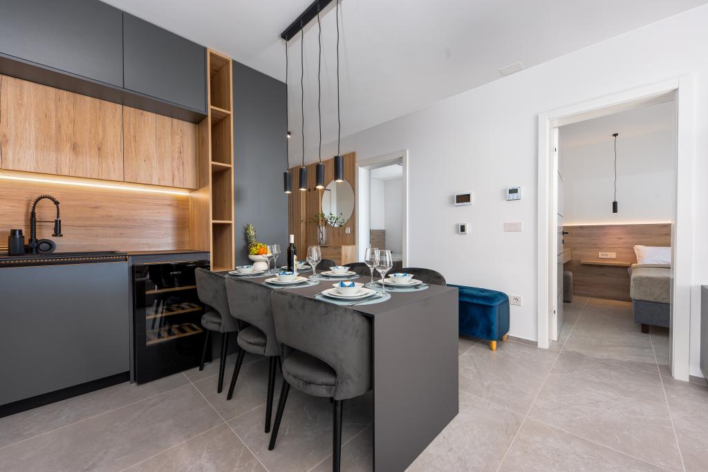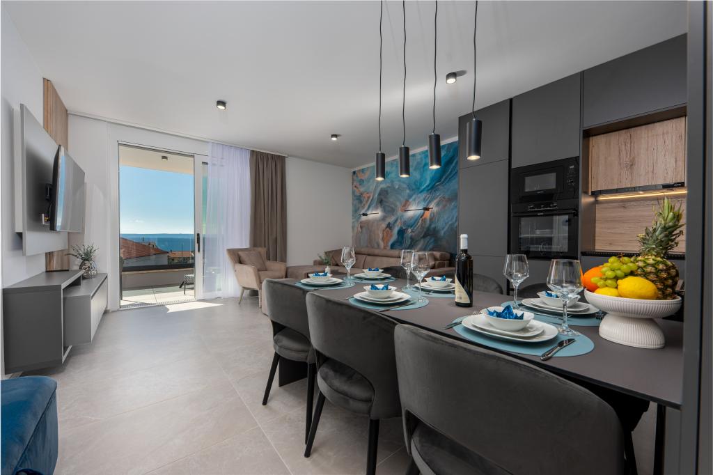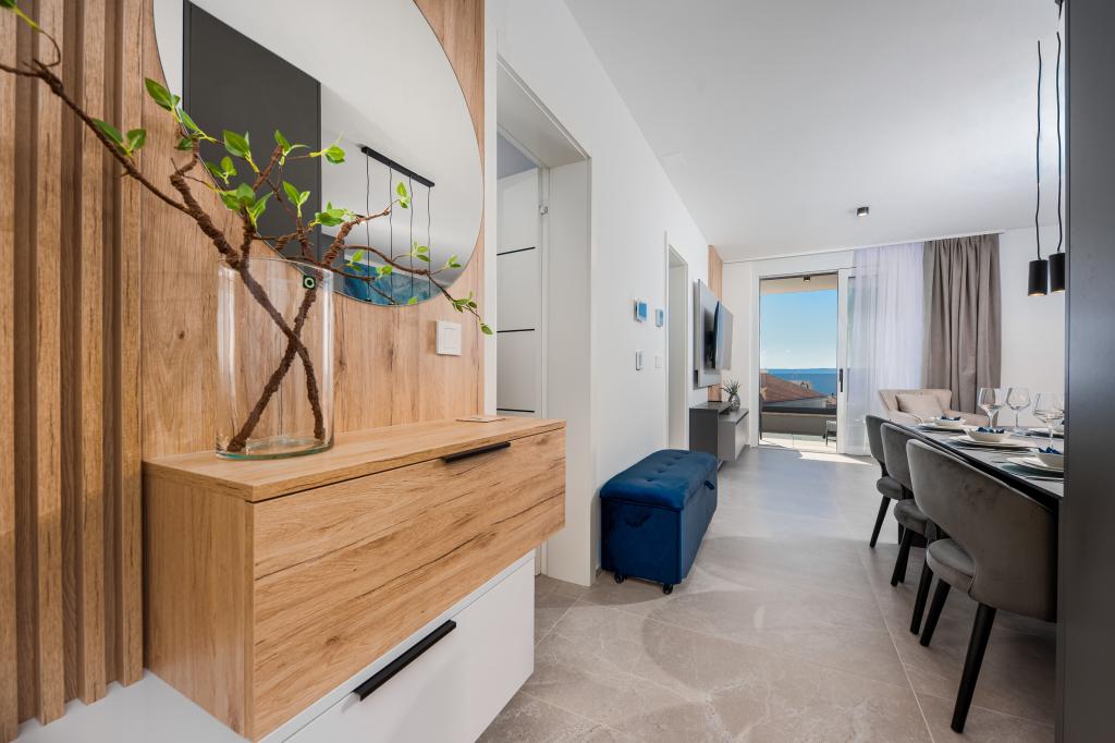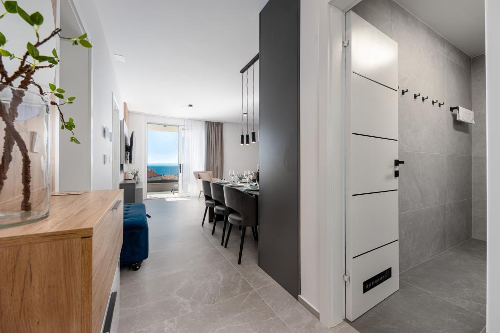 Апартаменты Sunshine-Breeze по адресу ул. Прилаз обали 22а в Промайне предлагают полностью оборудованные современные апартаменты на 3 человека (4+2 человека) и 3 человека (2+2 человека) в тихой части города, идеально подходящие для спокойного отдыха. Комплекс расположен всего в 2 минутах ходьбы от главного пляжа. Все апартаменты оборудованы кондиционерами, бесплатным Wi-Fi, парковкой и просторными террасами для наслаждения средиземноморской атмосферой. Из апартаментов 2+2 открывается вид на море и Бийоково, а из апартаментов 4+2 — на море. Апартаменты Sunshine-Breeze — это недавно построенный комплекс. Все кухни современно оборудованы (холодильник с морозильной камерой, плита, духовка, чайник, посудомоечная машина, кофеварка...). Все ванные комнаты современно оборудованы стиральной машиной, феном. Кровати с пружинным блоком и высококачественными медицинскими матрасами Superlux. Это идеальный выбор для семей, пар и всех, кто хочет насладиться красотами Макарской Ривьеры.