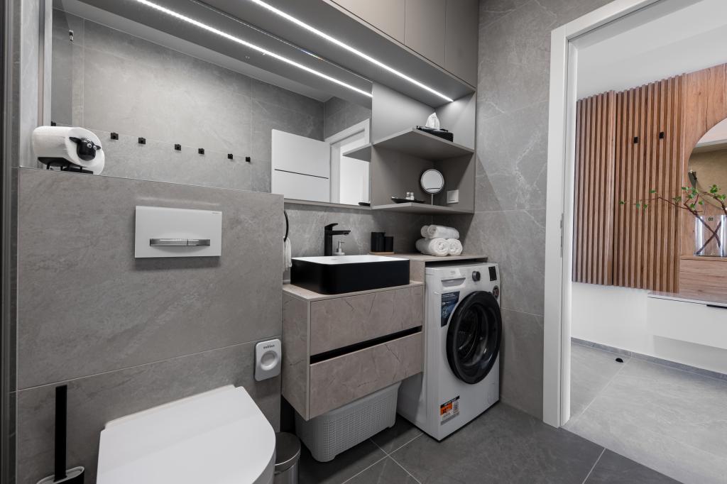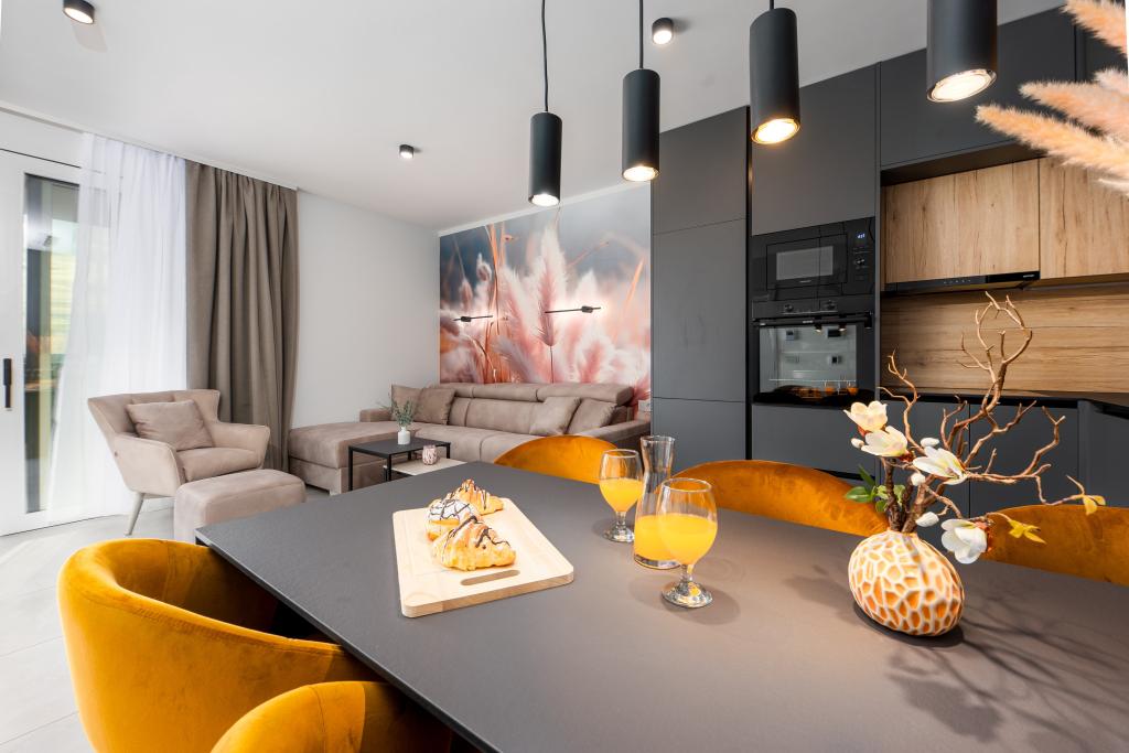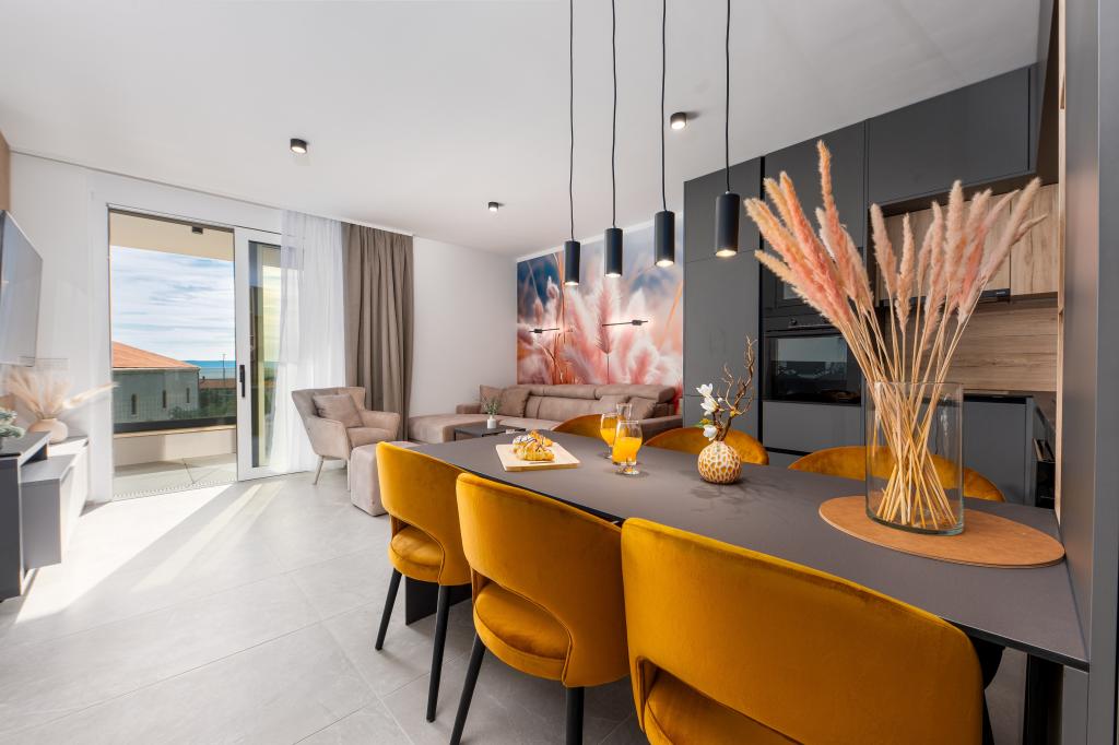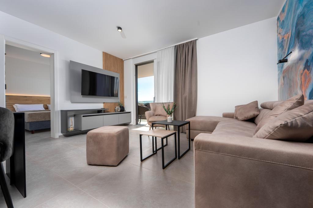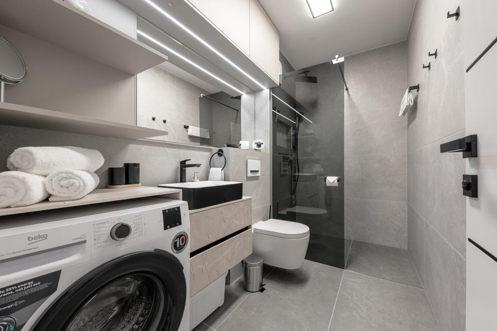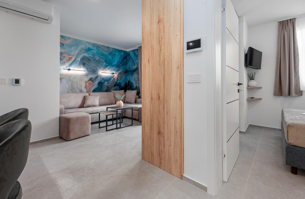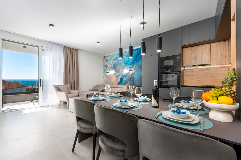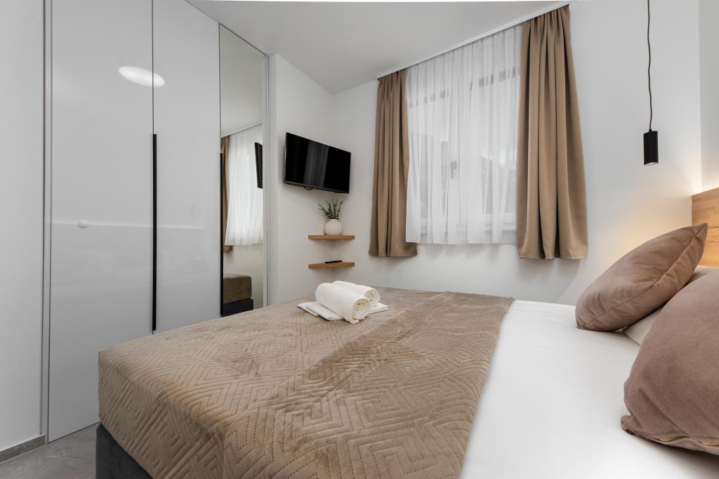Апартаменты Sunshine-Breeze по адресу ул. Прилаз обали 22а в Промайне предлагают полностью оборудованные современные апартаменты на 3 человека (4+2 человека) и 3 человека (2+2 человека) в тихой части города, идеально подходящие для спокойного отдыха. Комплекс расположен всего в 2 минутах ходьбы от главного пляжа. Все апартаменты оборудованы кондиционерами, бесплатным Wi-Fi, парковкой и просторными террасами для наслаждения средиземноморской атмосферой. Из апартаментов 2+2 открывается вид на море и Бийоково, а из апартаментов 4+2 — на море. Апартаменты Sunshine-Breeze — это недавно построенный комплекс. Все кухни современно оборудованы (холодильник с морозильной камерой, плита, духовка, чайник, посудомоечная машина, кофеварка...). Все ванные комнаты современно оборудованы стиральной машиной, феном. Кровати с пружинным блоком и высококачественными медицинскими матрасами Superlux. Это идеальный выбор для семей, пар и всех, кто хочет насладиться красотами Макарской Ривьеры.