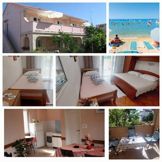 Мы сдаем в аренду полностью оборудованные апартаменты с кондиционером (на 2-5 человек) + спутниковое/ЖК-телевизор, каждый со своей террасой или балконом + парковочное место во дворе и высокоскоростной Интернет. Мы также предлагаем номера с кондиционером на 2-3 человека, каждый со своей террасой, туалетом/туалетом, а также возможностью использования полностью оборудованной кухни, столовой (SAT/LCDTV) и красивой открытой террасы с садовой мебелью. Мы находимся рядом с прекрасным песчано-галечным пляжем (200-250 м) и всеми другими удобствами, необходимыми для беззаботного и приятного летнего отдыха (магазины, рестораны, пиццерии, пляжные бары и кафе, развлекательные заведения, программы для детей...) . От старого центра города острова Раб с его богатой историей мы находимся всего в 20 минутах ходьбы по красивой набережной у моря.