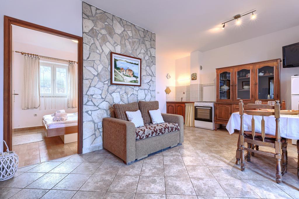 Дом с несколькими апартаментами в поселке Дренье. Расположен в 5 минутах езды от пляжа и в 15 минутах от города Лабин. Апартаменты находятся на первом этаже. Апартаменты обеспечивают полную приватность и возможность отдыха и расслабления. Одни апартаменты площадью 42 квадратных метра включают спальню с двуспальной кроватью и возможностью использования дополнительной кровати, гостиную с обеденной зоной, кухню со всей необходимой бытовой техникой, террасу с видом на море и ванную комнату. Вторые апартаменты площадью 56 квадратных метров включают две спальни, каждая с двуспальной кроватью, гостиную с обеденной зоной, кухню со всей необходимой бытовой техникой, террасу с видом на море и ванную комнату. Ближайший ресторан и ближайший рынок находятся в 5 минутах езды. Апартаменты расположены в тихом месте с приятной природной обстановкой — все, что нужно для идеального отдыха!