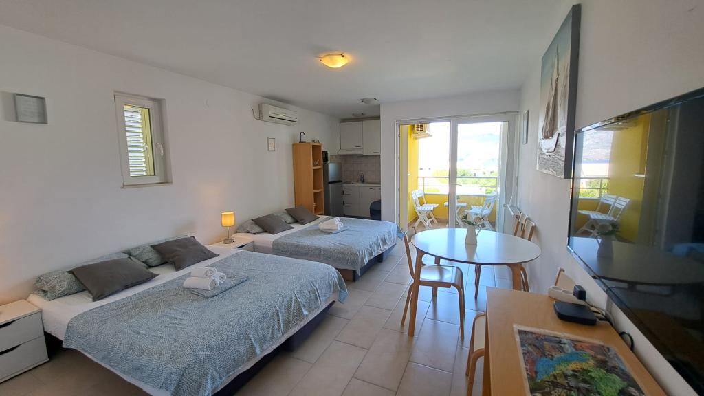 Мы остались в однокомнатной квартире, мы пошли в невидимое и не знали, как на фотографиях все или нет. И когда приехали, были в восторге, это лучше, чем на фотографиях. Фантастическая квартира, вся новая, чистая, красивая, а вид с балкона захватывающий, на море и на красивый Велебит. Госпожа Бильяна, спасибо вам за все, за теплый прием, за рекомендации, куда пойти и что посетить. Приветствие.