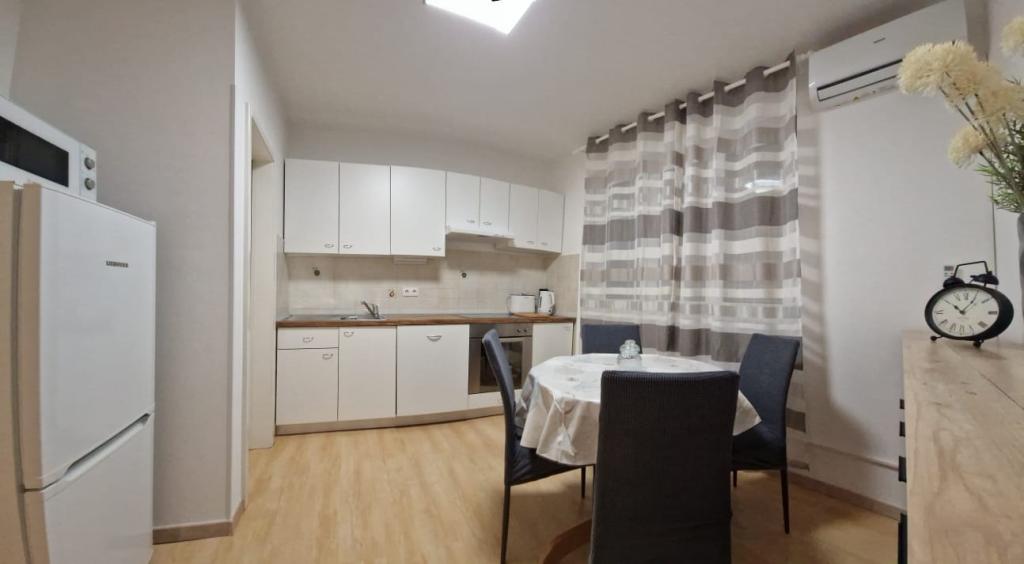 Квартира расположена на первом этаже жилого дома, что обеспечивает к ней легкий доступ. Интерьер современно оборудован для проживания в любое время года: в помещении установлены два кондиционера, а в холодные дни – теплый пол. Для вашего дополнительного комфорта и уединения все окна оборудованы рольставнями и москитными сетками. Расположение идеально подходит для любителей пеших прогулок: до пляжа всего 10 минут пешком, а до центра города – 15 минут. Все необходимые удобства, такие как магазины, общественный транспорт, аптеки, больницы, торговые центры, кафе и т. д., находятся в непосредственной близости. В здании есть собственная бесплатная парковка для жильцов и гостей. Забронировать парковочное место заранее нельзя, но поскольку оно принадлежит зданию, найти место будет проще.