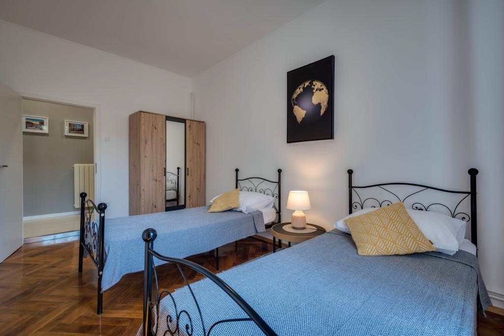 Апартаменты Sorelle Fiume расположены в самом центре Риеки, на первом этаже здания, всего в 300 метрах от моря. В этих просторных апартаментах площадью 96 квадратных метров с комфортом разместятся до шести человек. Состоит из трех спален, гостиной, полностью оборудованной кухни, ванной комнаты и балкона с видом на сад. В каждом номере есть кондиционер, гости могут воспользоваться бесплатным Wi-Fi, телевизором со 150 каналами, стиральной машиной, посудомоечной машиной, плитой с духовкой, микроволновой печью, кофеваркой и холодильником с морозильной камерой. Гости, остановившиеся в апартаментах Sorelle Fiume, отметили их исключительное расположение, простор, чистоту и доброту хозяев. Многие также похвалили близость к ресторанам, кафе и культурным достопримечательностям, что делает эти апартаменты идеальным выбором для семейного отдыха или проживания с друзьями в Риеке.