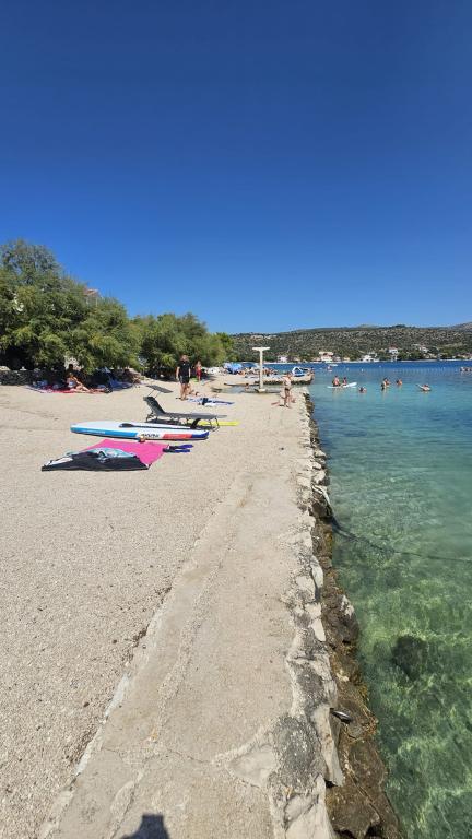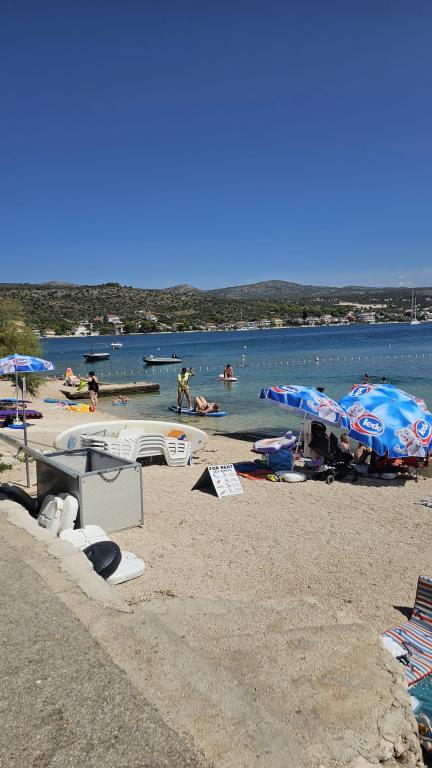Просторный дом, вмещающий до 16 человек, идеально подходит для больших семей или групп друзей, желающих насладиться отдыхом у моря. В распоряжении гостей большая терраса площадью 50 м² с прекрасным видом на море, идеально подходящая для дружеских встреч, обедов на свежем воздухе и любования закатами. На террасе также есть газовый гриль, идеально подходящий для приготовления вкусных блюд в непринужденной атмосфере. Перед домом имеется парковка на 5 автомобилей, а также 5 велосипедов, идеально подходящих для изучения окрестностей и приятных прогулок вдоль моря. Дом расположен в отличном месте, всего в 150 м от моря и пляжа, в окружении зелени и естественной тени, обеспечивая идеальное сочетание комфорта, уединения и близости ко всем удобствам для незабываемого отдыха.