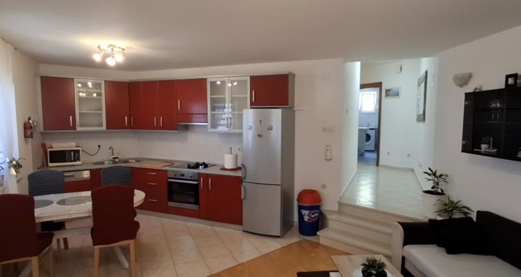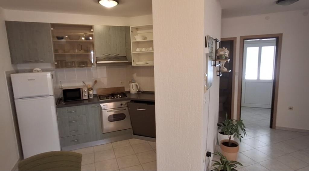 Квартира рекомендуется, все, как описано (посудомоечная машина, духовка, большой холодильник, биде). Потрясающий вид на море с балкона и кухни. В одной спальне есть дополнительный балкон с видом на море, а в другом окне с видом на прекрасные горы. О свойстве есть бассейн с великолепным видом на море и горы. На близлежащем пляже (внизу) очень интимное, не было много людей - небольшой пляж галька и много мест, каменистые / бетона и, что важно, теневые. Очень приятно хост (Иво приветствовать вас и вашу семью) - доброжелательными и вежливыми. Однажды он принес нам теплые печенья с начинкой.