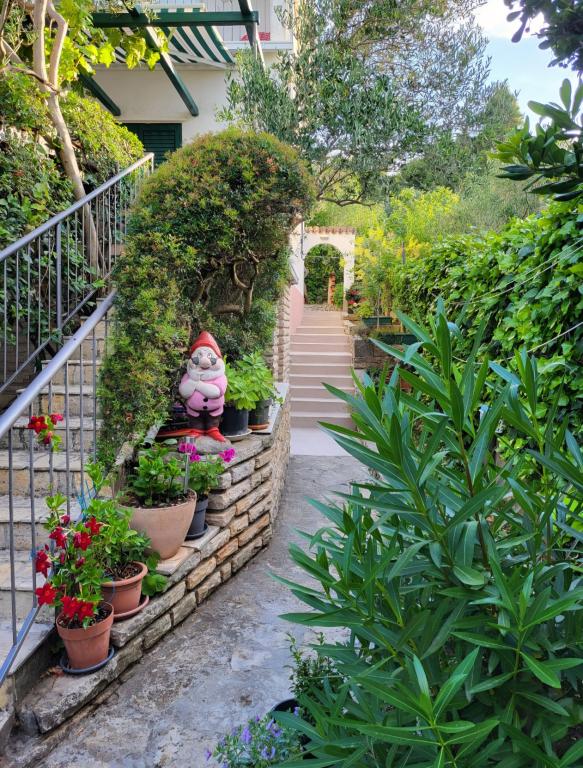 Дом на Чиово есть две квартиры, расположенные рядом с морем, полностью оборудованным и современным, в тихой деревне с видом на заливе Каштел и Сплит. Идеальное место для мира и релаксации. В каждой квартире есть 2 спальни, гостиная, кухня, ванная комната. Квартира на первом этаже есть большая и заднюю террасу и квартиру в мансарде небольшую террасу. Парковка на 4 машины во дворе. Дом расположен в 1 км от Слатина и в 5 км от Трогира. Трогир проходит регулярный автобус и паром из Слатина. Пляж в передней части дома галечный пляж и предлагает такие удобства, как рестораны и развлекательные игры. Сплит составляет около 30 км, аэропорт около 8 км и Национальный парк Крка 50 км.