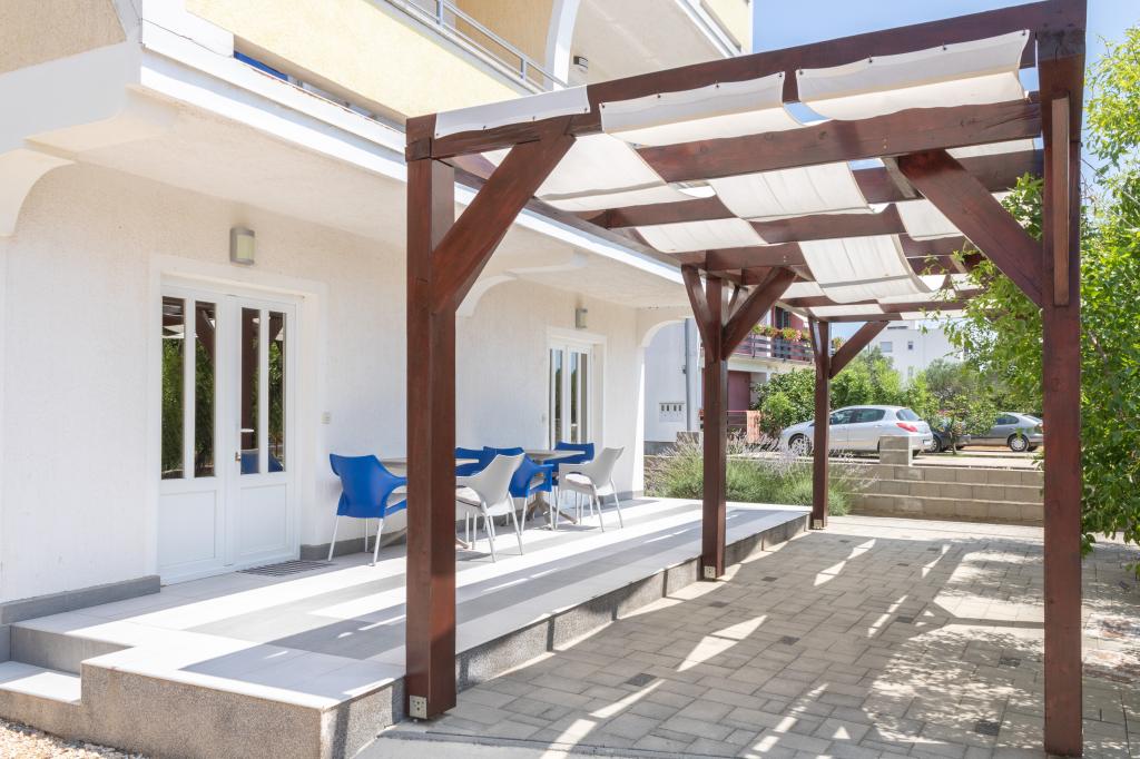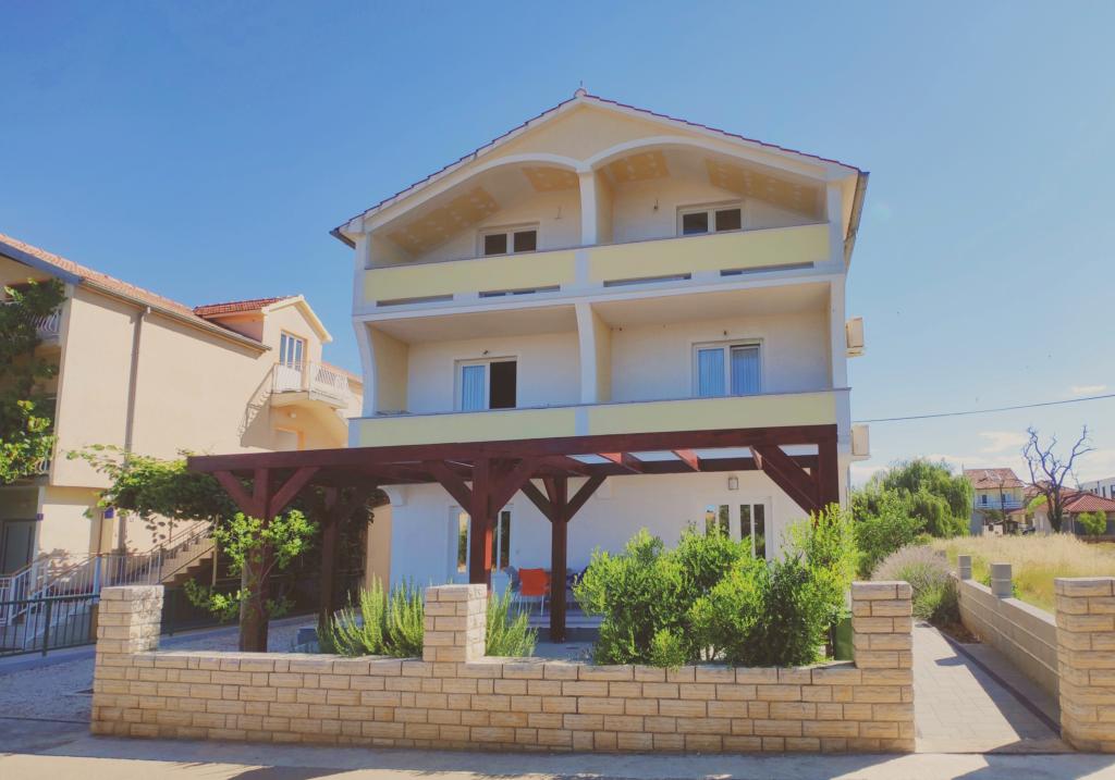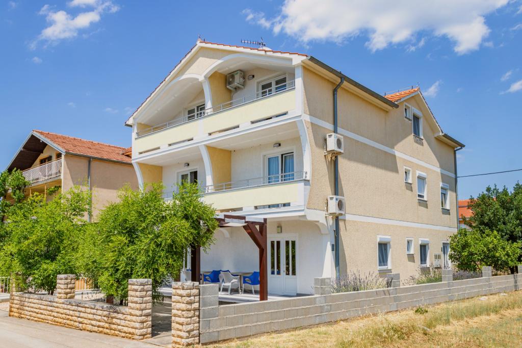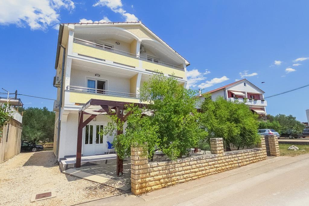 Апартаменты находятся в 3 минутах ходьбы от моря, центра города и магазинов и в 5 минутах от пляжа. Расположен на тихой улице недалеко от центра города. Во дворе предусмотрена парковка. Две квартиры находятся на первом этаже здания, каждая имеет террасу площадью 8 м² спереди, а одна недавно отремонтированная квартира находится на втором этаже, в мансарде здания, с балконом площадью 6 м².
