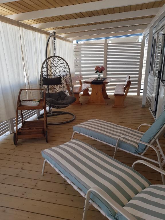 Остановитесь в отдельных домиках в небольшом семейном кемпинге, расположенном прямо рядом с пляжем.