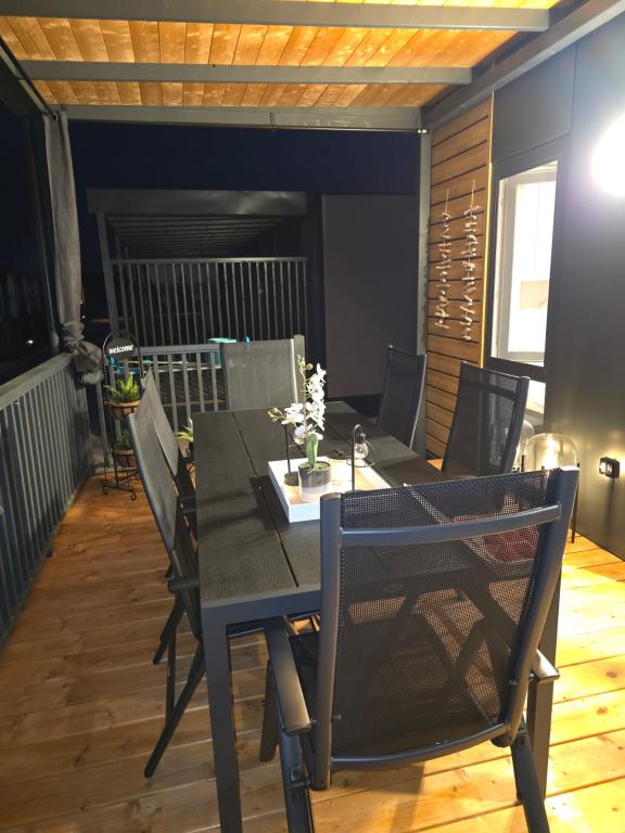 Мобильный дом, расположенный в тихом кемпинге, всего в 40 метрах от пляжа, просторная терраса с газовым грилем и потолочными вентиляторами, а также дополнительные удобства для отдыха, качели и кресла. Дом оборудован всей необходимой техникой и посудой, чтобы вы могли насладиться отдыхом, как дома. Въезд транспортных средств на территорию лагеря запрещен, чтобы дети могли беззаботно играть, пока вы отдыхаете.