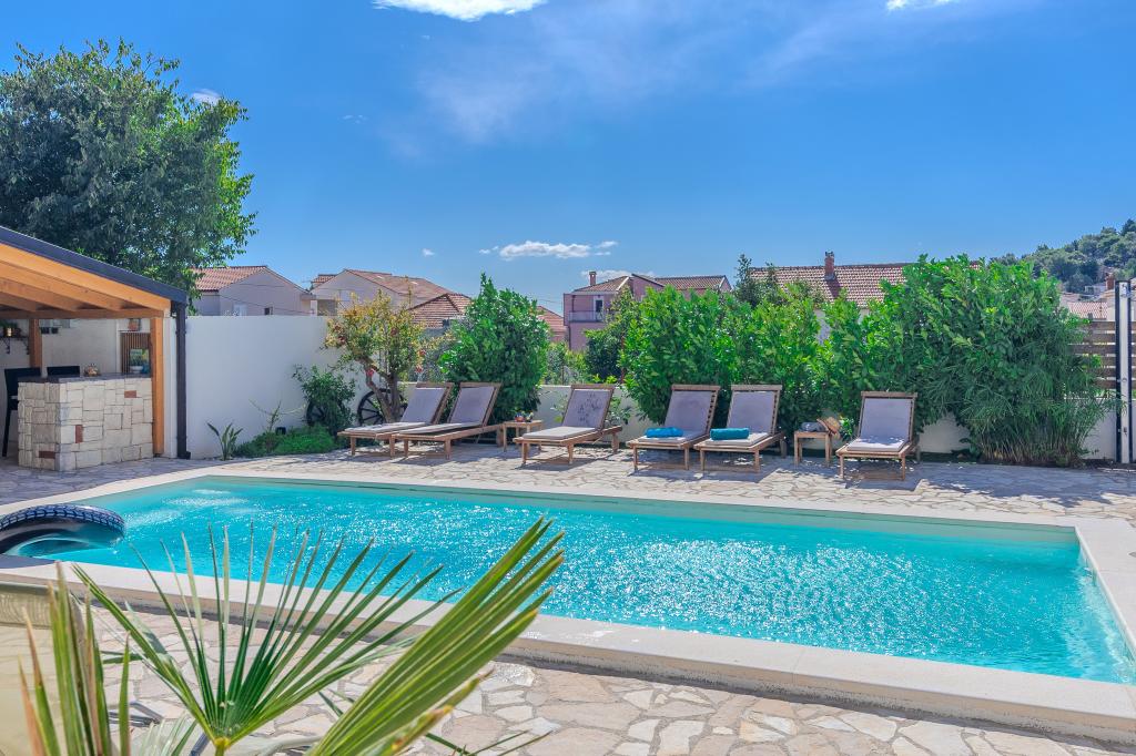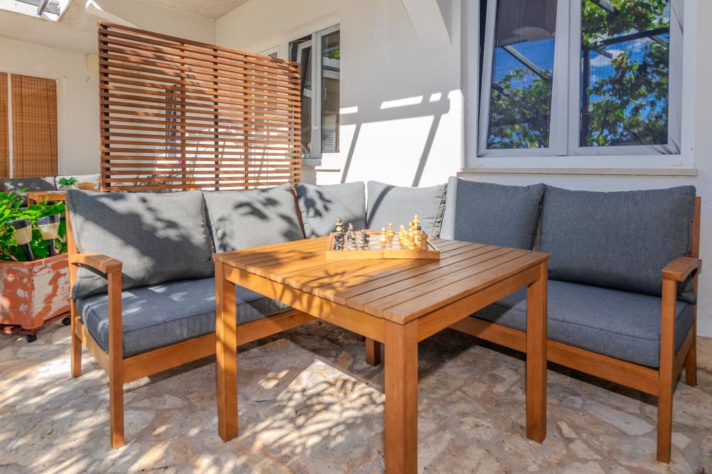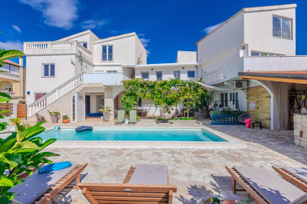 Апартаменты расположены в небольшой рыбацкой деревушке Трибунь. В нескольких минутах ходьбы от дома находится рынок, где вы можете ежедневно покупать свежую рыбу, сезонные фрукты и овощи. Большой сад с бассейном и другими удобствами сделает ваш отдых приятным. Из Трибуня организуются морские прогулки в Национальный парк Корнати.