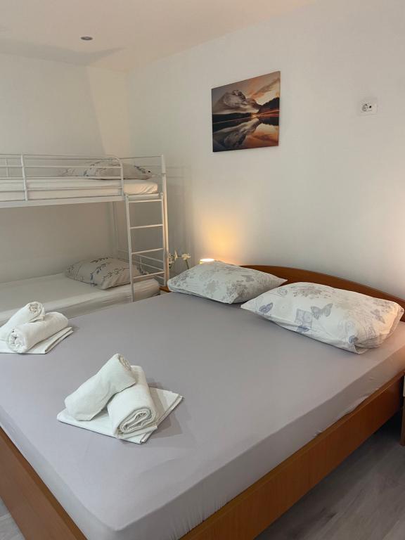 Квартира-студия Тучепи Анита. Квартира-студия и кухня полностью оборудованы, двуспальная кровать, двухъярусная кровать, кондиционер, ванная комната, терраса, балкон, постельное белье, полотенца, бесплатная парковка, дополнительная кровать по запросу, детская кроватка. Здесь есть пляж в 200 метрах от квартиры. это до 4 минут песка. Пляж очень большой, есть навесы, пляж небольшой. Магазины, рестораны, кафе находятся очень близко от квартиры, до 100 метров.